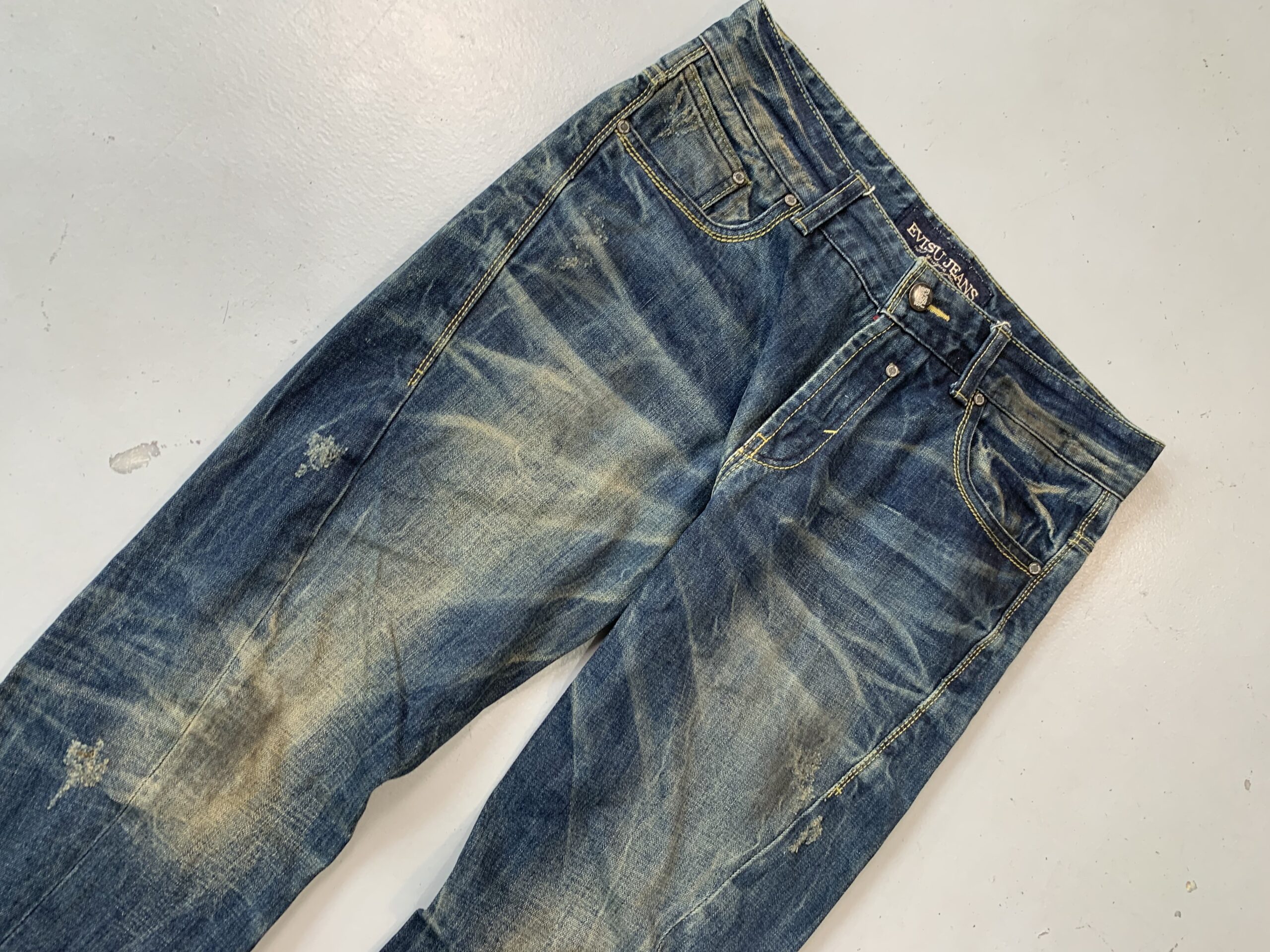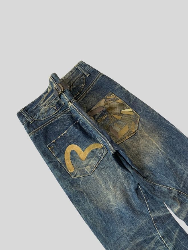 This item is Evisu-inspired and not advertised as an official branded product. Please review photos and details before purchasing.