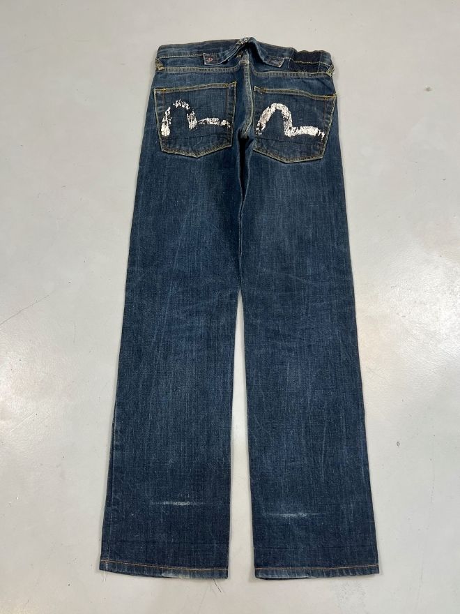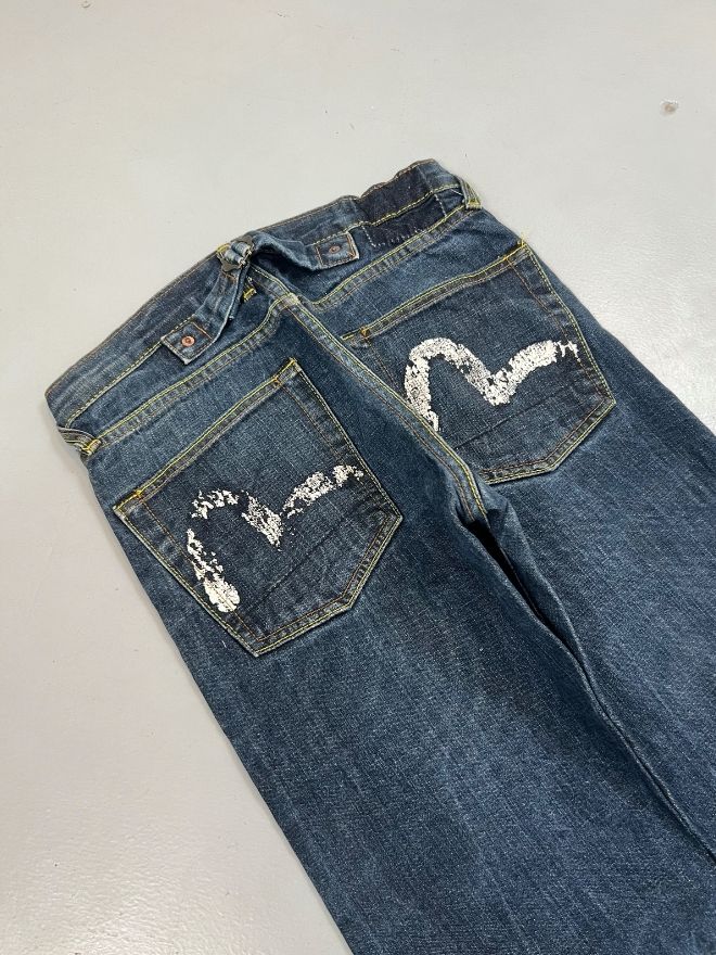 Vintage Evisu-inspired seagull print denim in classic blue wash. Tagged size 30, fits true. Well-maintained, comfortable, and in great wearable condition. Perfect for collectors, archive lovers, and anyone into Japanese denim styling.