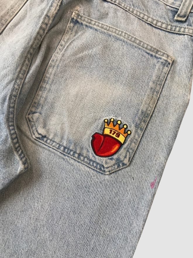 Iconic Style: Embroidered pipes and the exaggerated baggy fit are hallmarks of the JNCO brand.