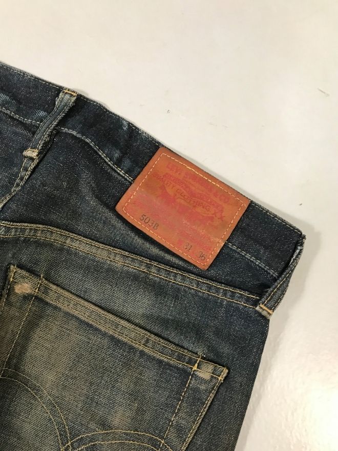 Authentic Vintage Levi’s 503 selvedge denim jeans, featuring classic Levi’s construction and timeless blue wash.