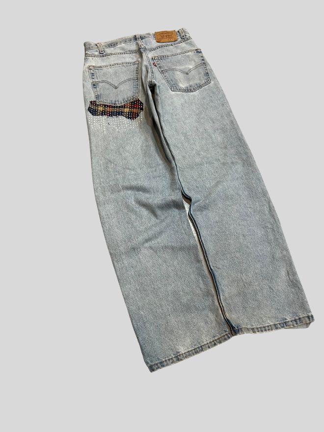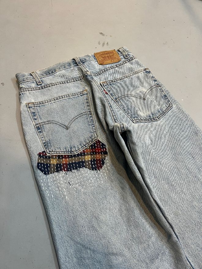 These Vintage Levi’s 569 Shashiko Work Jeans showcase a rugged workwear aesthetic combined with a relaxed, straight-leg 569 fit. Designed for durability and everyday comfort, this pair reflects Levi’s heritage craftsmanship while offering a versatile silhouette that works well for both casual and workwear-inspired styling.