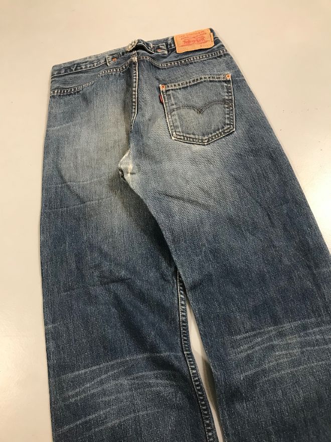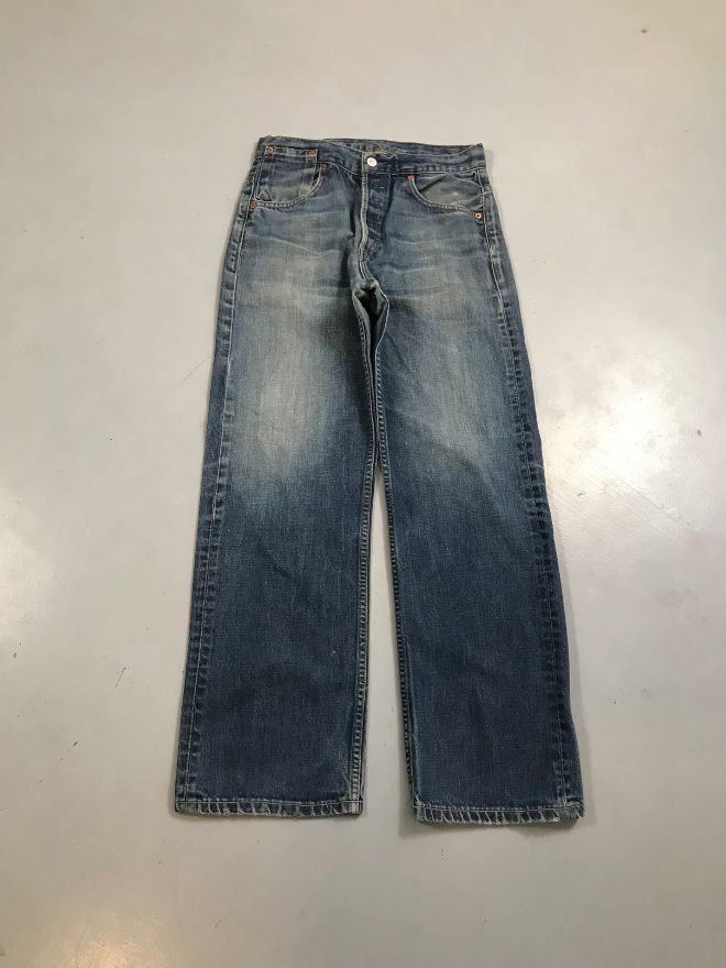 This pair comes in a rich blue wash with natural fading that enhances its vintage look. The denim is sturdy yet broken-in, offering comfort while preserving that classic Levi’s structure.