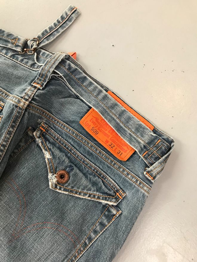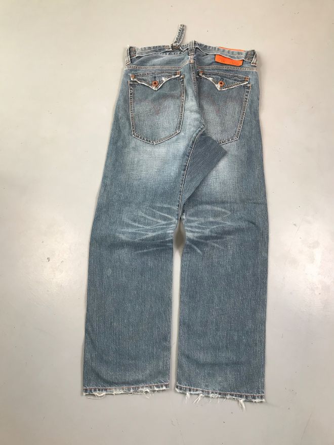 There are areas of damage that have been repaired—buyers should carefully review every photo to understand the exact condition. Perfect for denim collectors, Levi’s enthusiasts, and lovers of vintage workwear silhouettes.