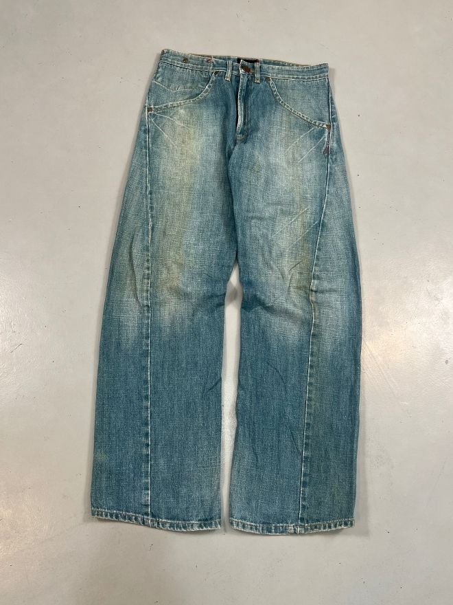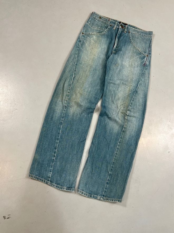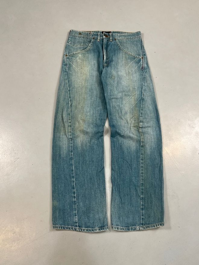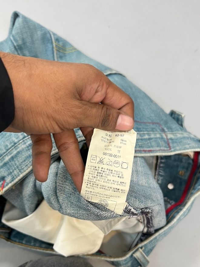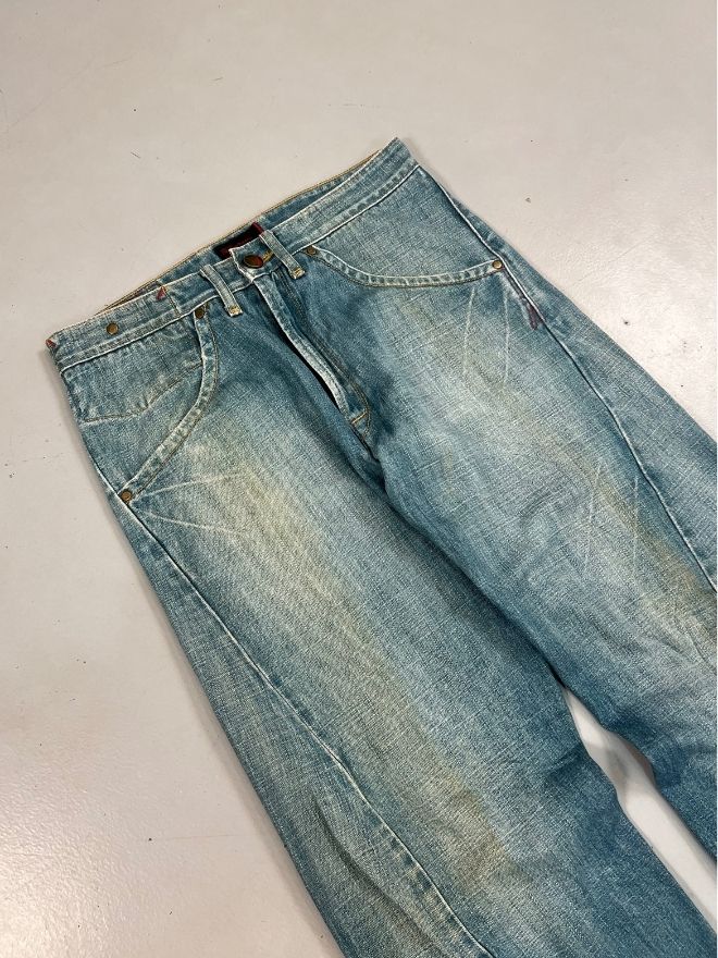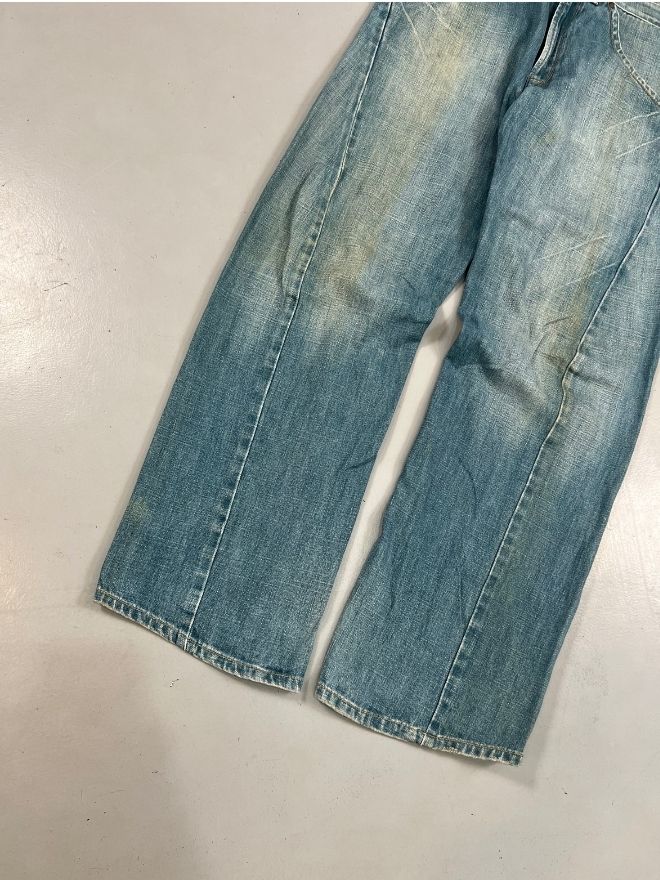 The fit offers a relaxed straight structure with a mid-rise, making it wearable with boots, sneakers, or heavy-duty workwear silhouettes. If you’re building an archival wardrobe or love unique Levi’s era-specific construction, this piece is a strong addition.