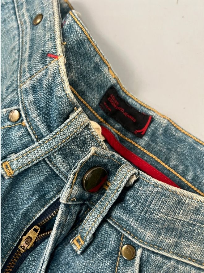 Please review photos carefully as the denim shows signs of age and distress — part of its authentic vintage character.