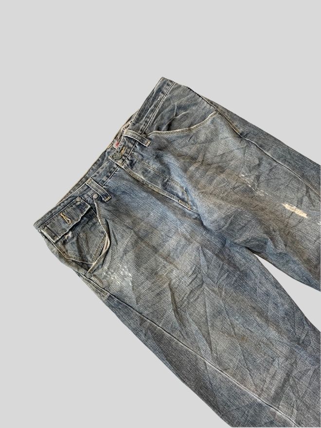 A rare vintage Levi’s engineer denim with authentic character and bold presence.