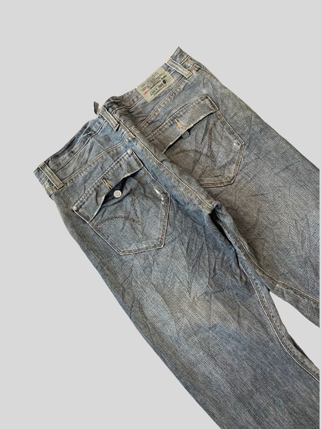 The structured fit and solid construction stay true to Levi’s heritage, while the natural fading and visible damages enhance the raw vintage aesthetic. Perfect for styling with boots, oversized tops, or layered streetwear looks.