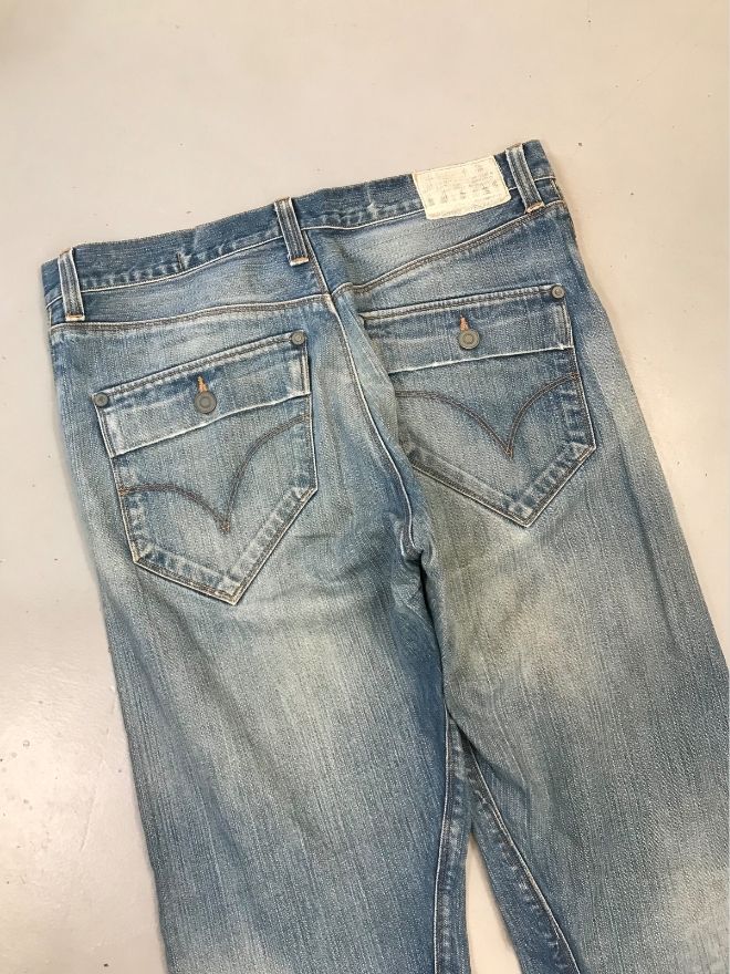 This is an original vintage Levi’s engineer denim, featuring a timeless workwear-inspired design and durable construction. Engineer jeans are known for their functional details and clean straight fit, making them suitable for vintage styling, casual wear, or denim collections.