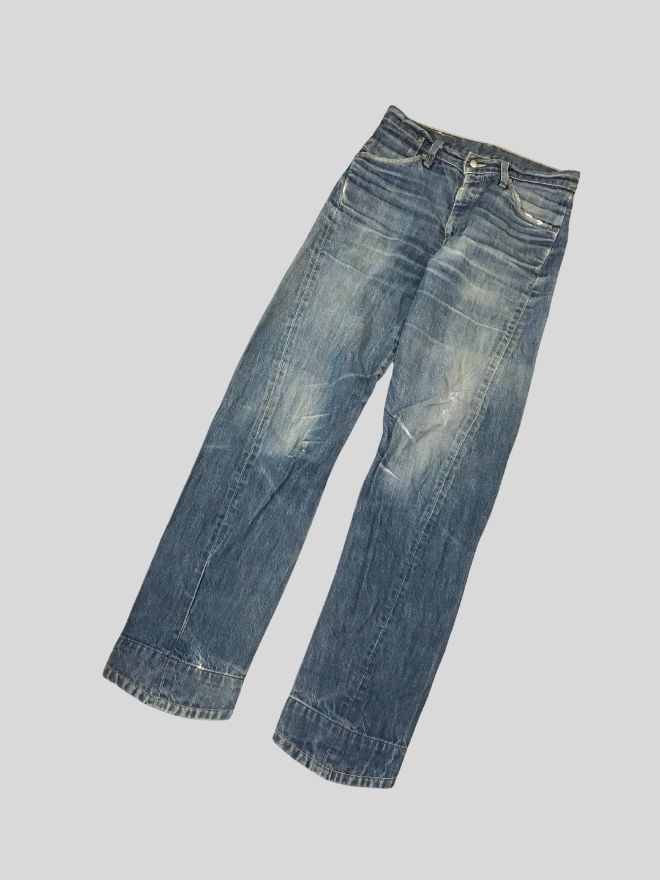 Authentic vintage Levi’s engineer jeans in blue denim. Classic workwear silhouette with great wear and character
