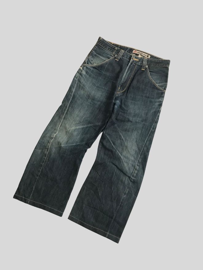 A classic pair of Vintage Levi’s Engineer Jeans, known for their iconic functional design and durable construction. This pair comes in a timeless blue wash with natural vintage aging, giving it a rugged and authentic workwear vibe.