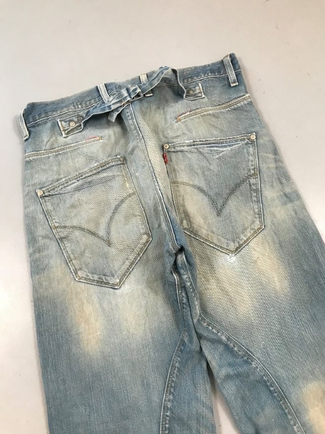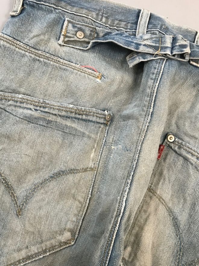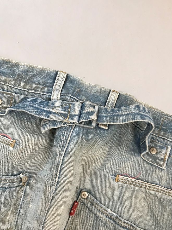 Original Vintage Levi’s Engineer Denim featuring the signature adjustable buckle belt and workwear construction.