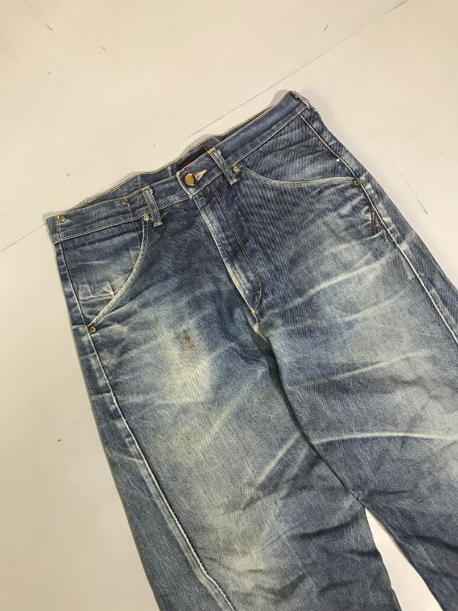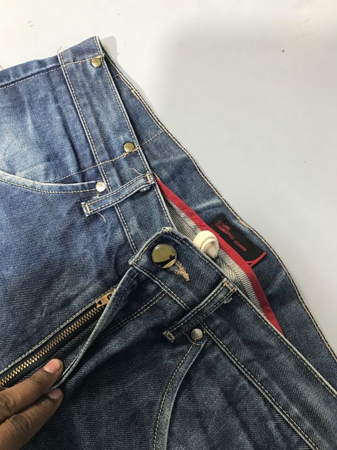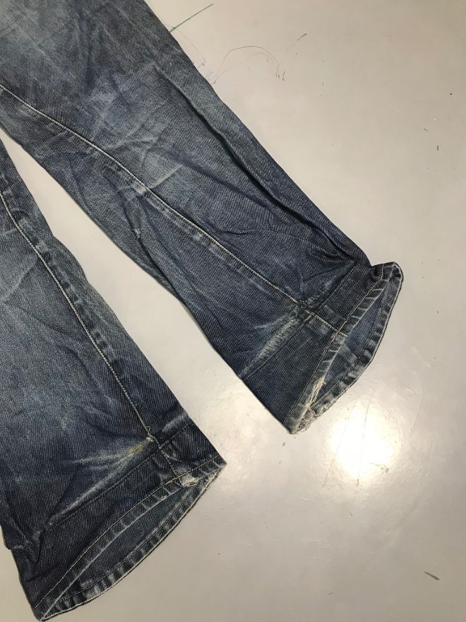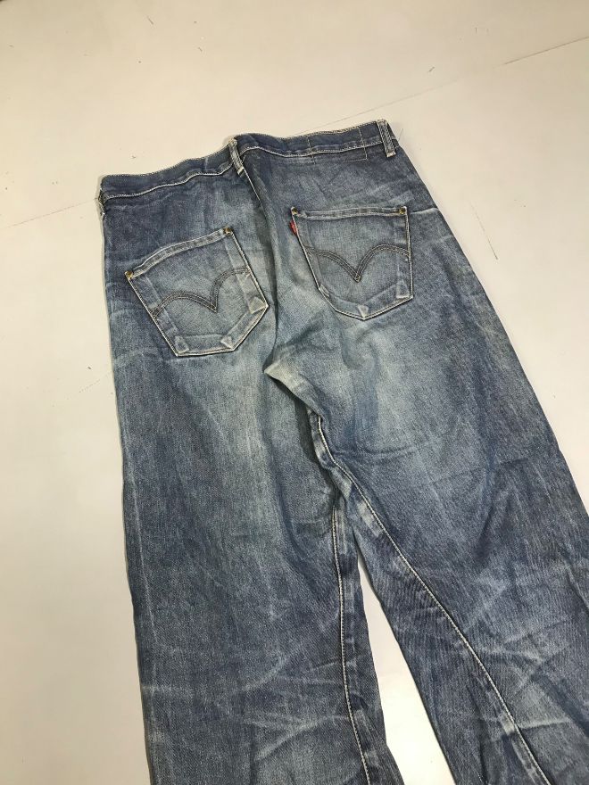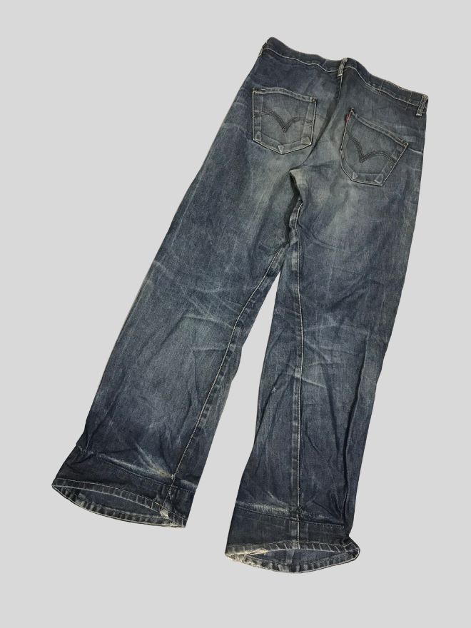 This is a vintage Levi’s engineer jeans denim, featuring a classic blue wash and a durable workwear-inspired design. Known for their sturdy construction and timeless appeal, Levi’s engineer jeans are a staple for vintage denim lovers and everyday wear.