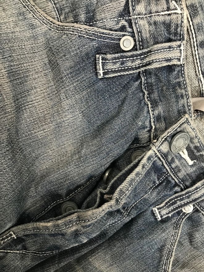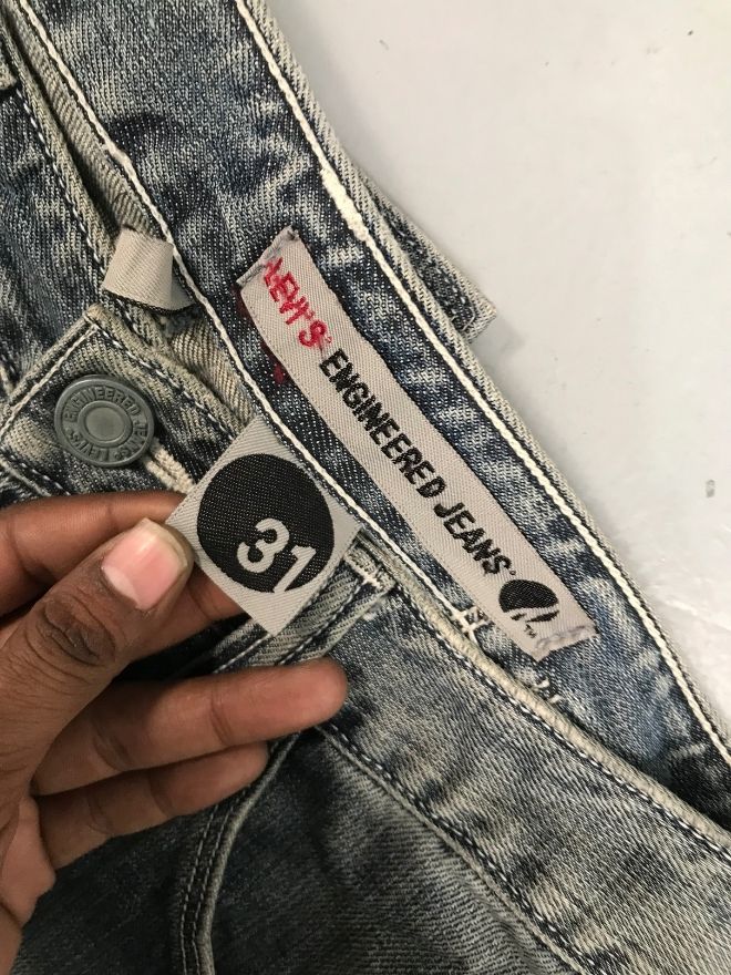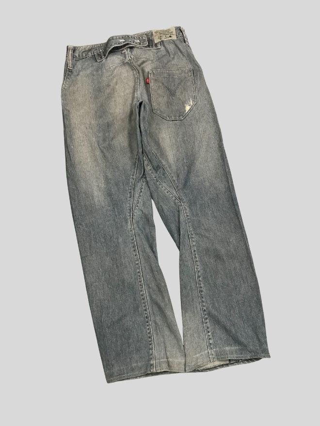 Vintage Levi’s engineer jeans in blue denim, classic workwear style.