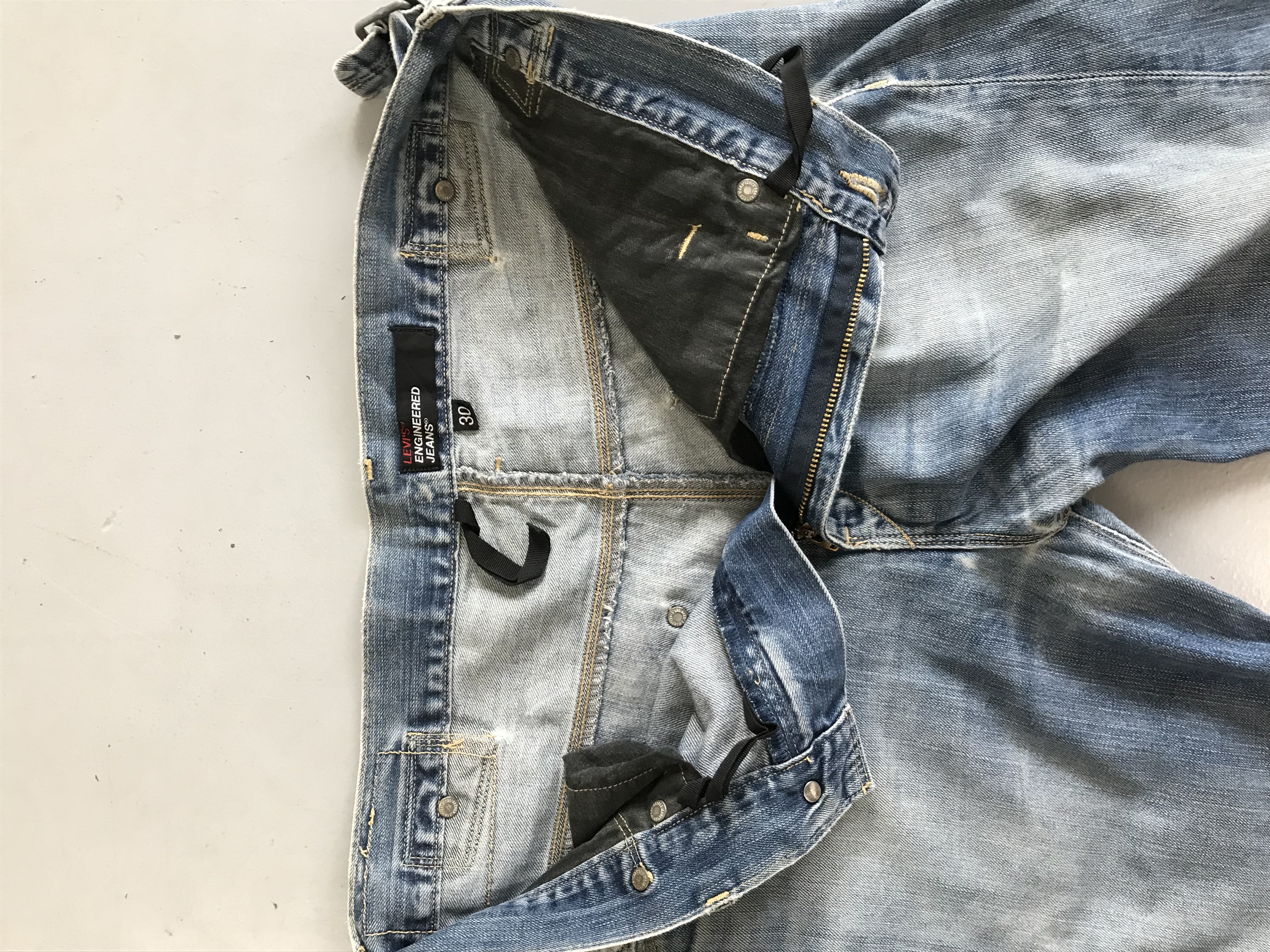 Made from sturdy blue denim, this pair showcases authentic wear and natural aging, including visible damages that add character and originality. These imperfections reflect true vintage condition and make each piece unique. Perfect for collectors or anyone who appreciates worn-in Levi’s denim.