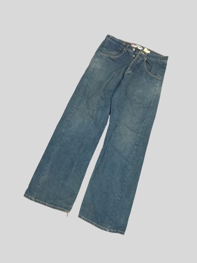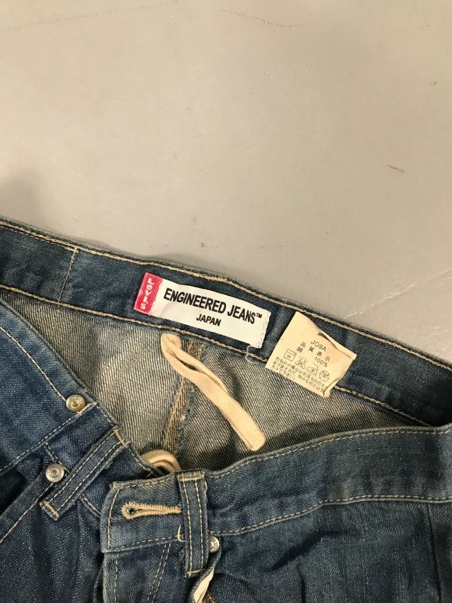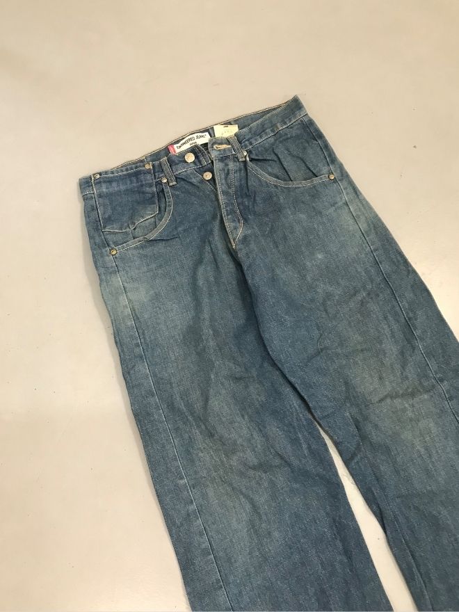 These Vintage Levi’s Engineer Jeans Denim – Made in Japan are a strong example of Levi’s premium Japanese production combined with a bold avant-garde workwear aesthetic. Japanese-made Levi’s pieces are highly respected for their superior construction, quality denim, and attention to detail, making them especially desirable among vintage collectors and denim enthusiasts.