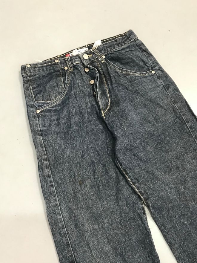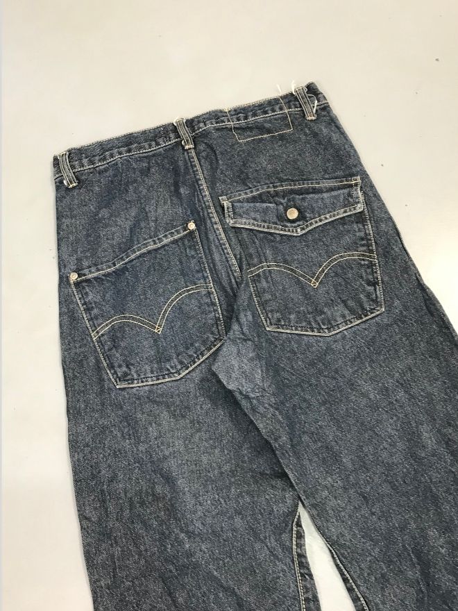 These Vintage Levi’s Engineer Jeans Denim – Made in Japan are a premium example of Levi’s craftsmanship combined with distinctive avant-garde workwear styling. Japanese-made Levi’s denim is highly respected for its quality, construction, and attention to detail, making pieces like this especially desirable among collectors and denim enthusiasts.