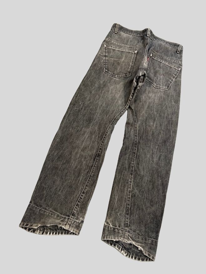 Crafted from sturdy blue denim, these jeans offer a comfortable, relaxed fit that works effortlessly with boots, sneakers, or layered streetwear looks. The overall condition is very wearable, with only minor dusty stains that can be removed with a hard wash or professional dry cleaning.