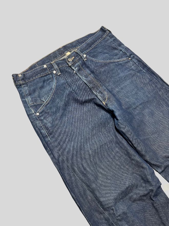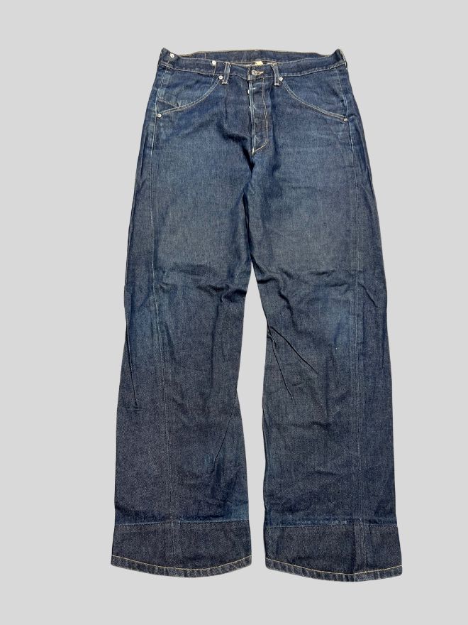 This pair of vintage Levi’s engineer jeans denim represents classic American workwear aesthetics with a strong avant-garde edge. Known for their durable construction and functional design, engineer jeans were originally inspired by utility and laborwear, making them a timeless piece in both streetwear and vintage fashion culture.