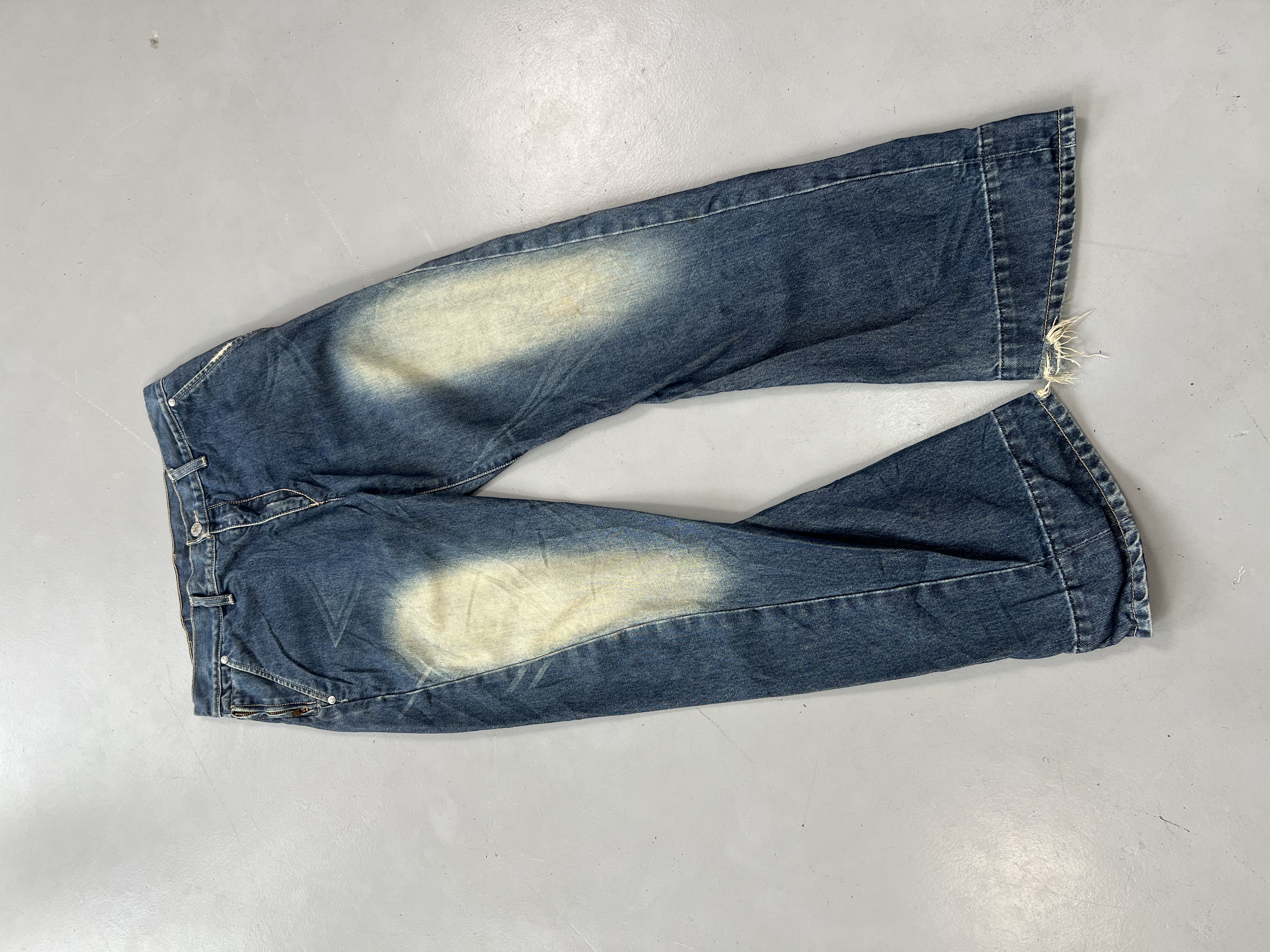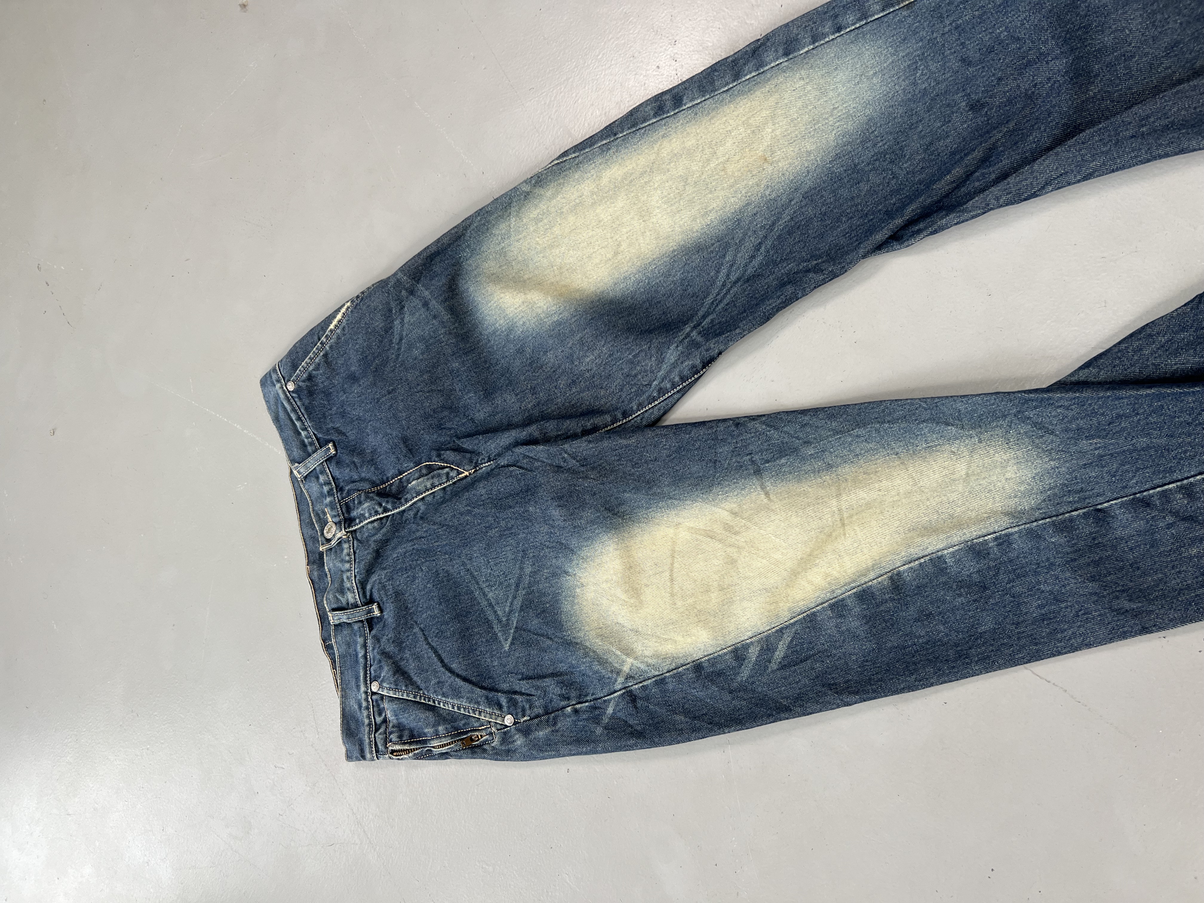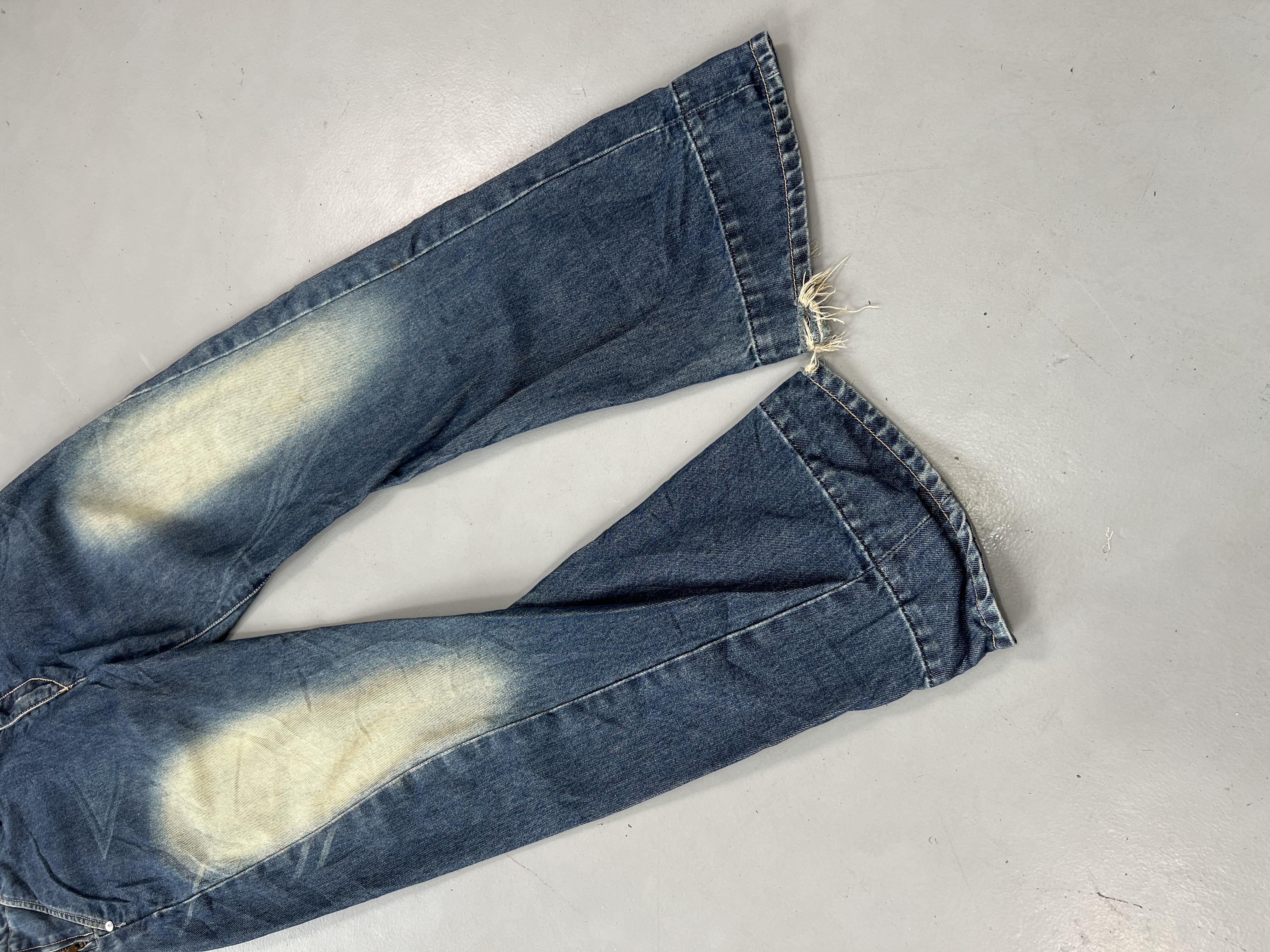 The jeans show natural signs of wear, including dusty stains that can be removed with a hard wash or dry cleaning. This adds character while maintaining overall comfort and structure. A versatile pair that pairs well with boots, sneakers, or layered workwear outfits.
