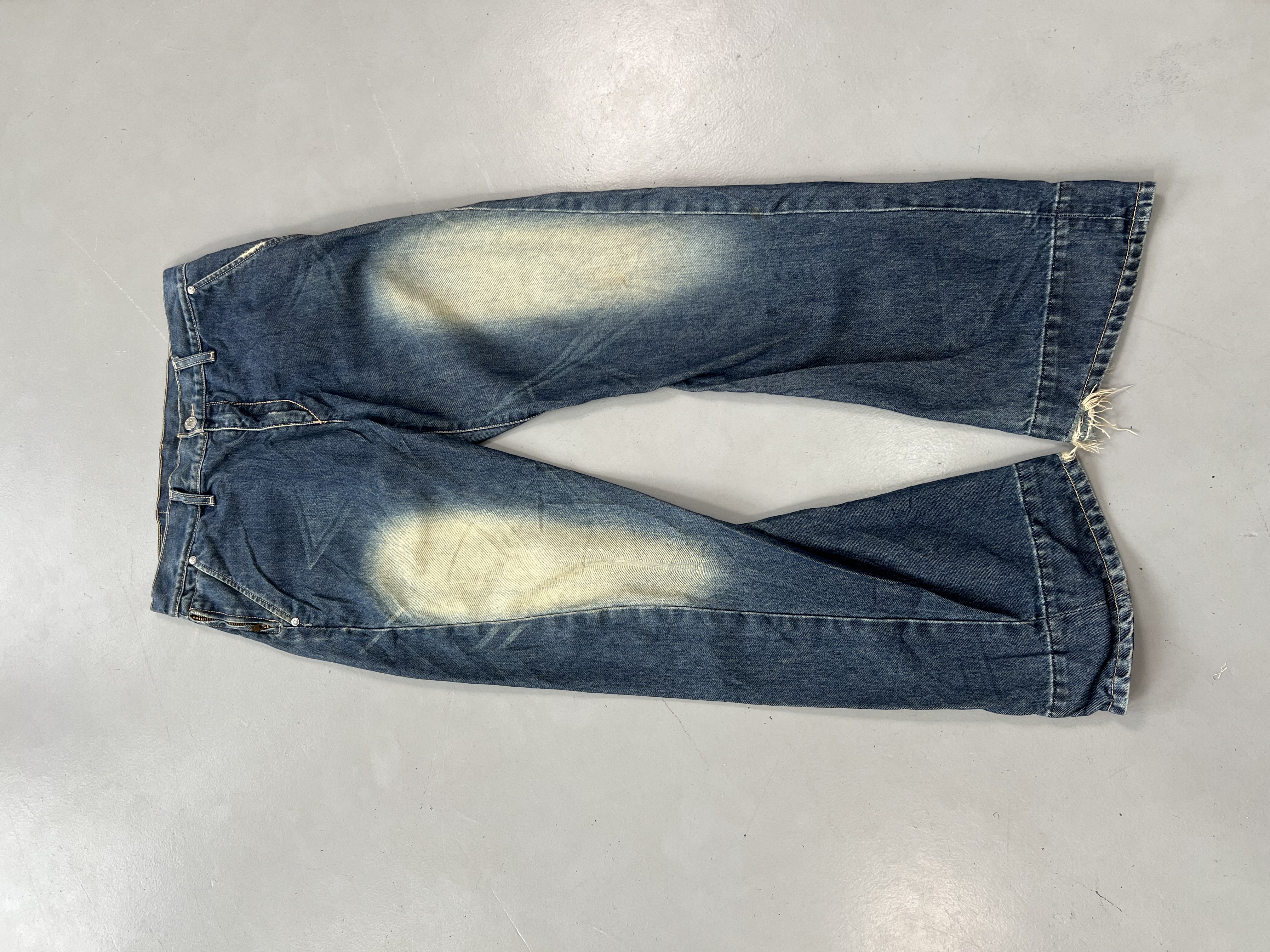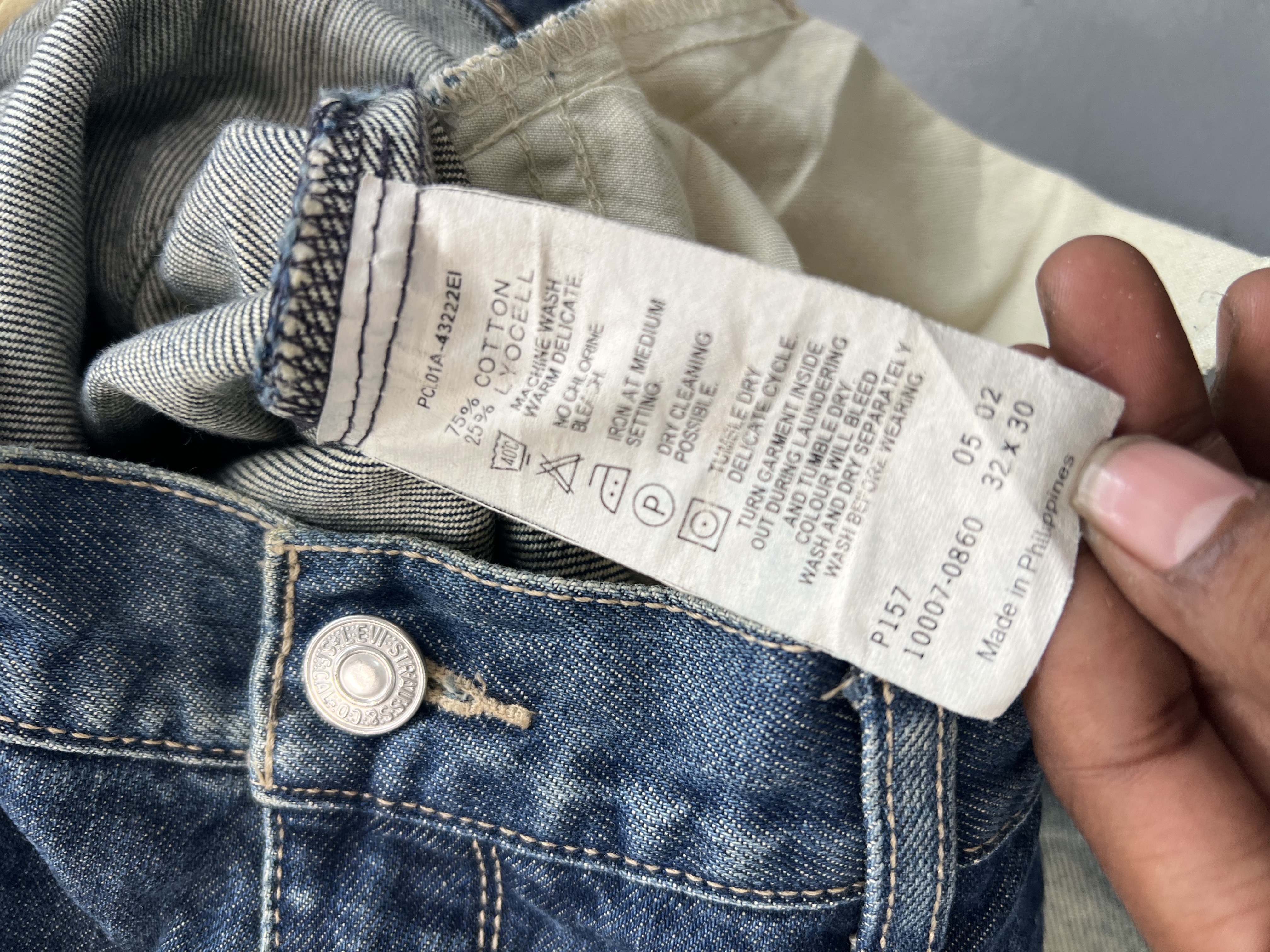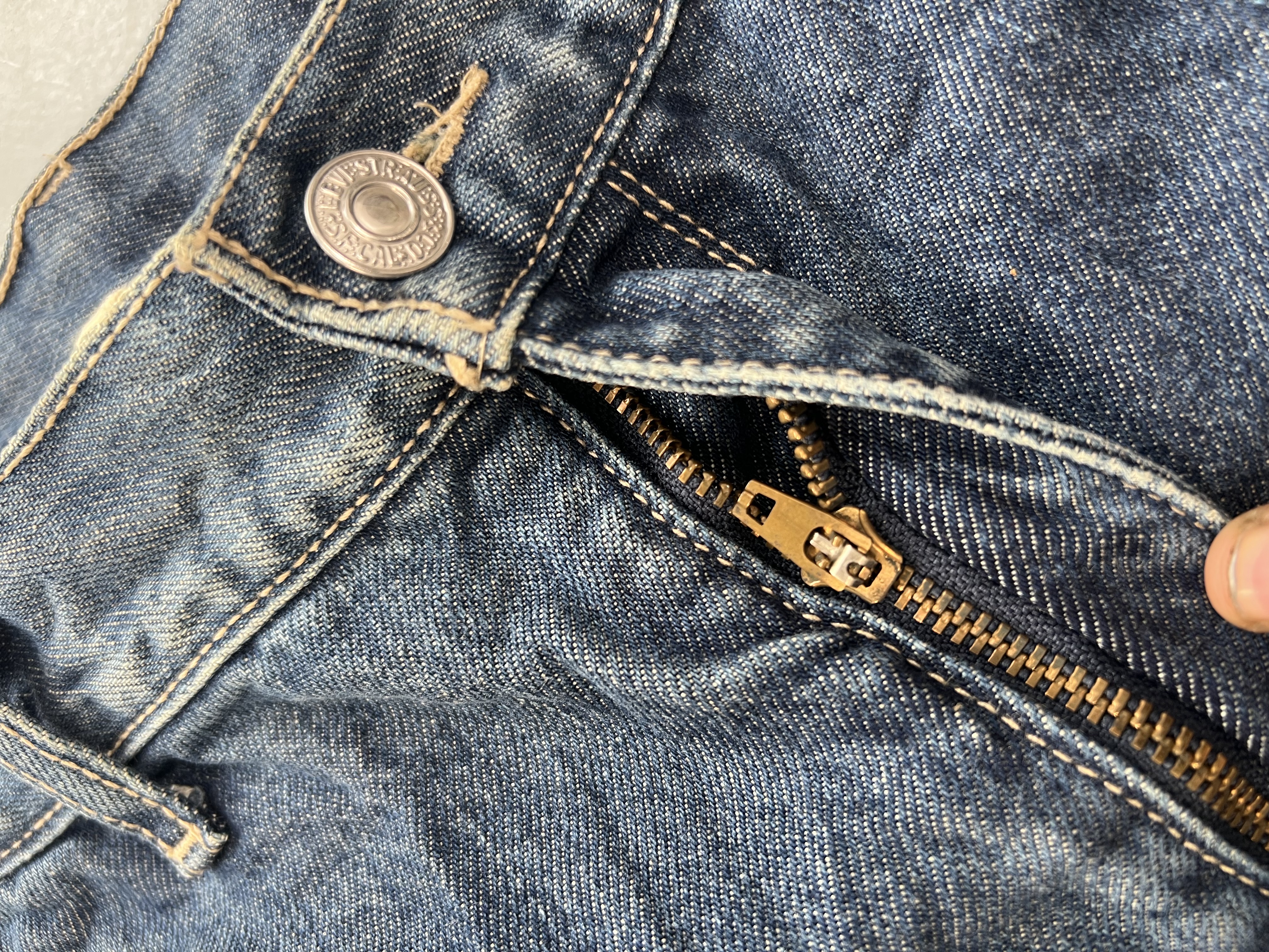 The jeans show natural signs of wear, including dusty stains that can be removed with a hard wash or dry cleaning. This adds character while maintaining overall comfort and structure. A versatile pair that pairs well with boots, sneakers, or layered workwear outfits.