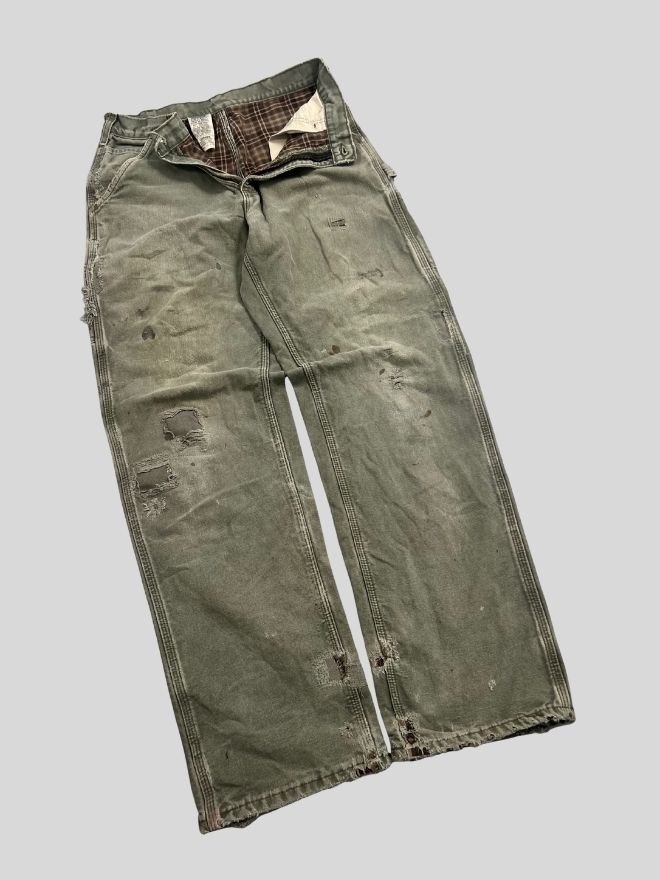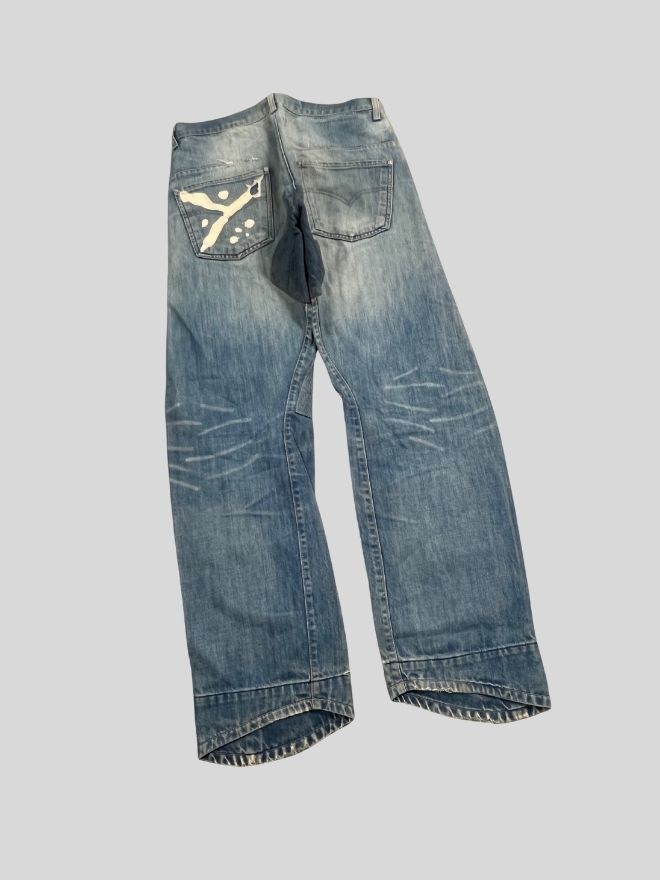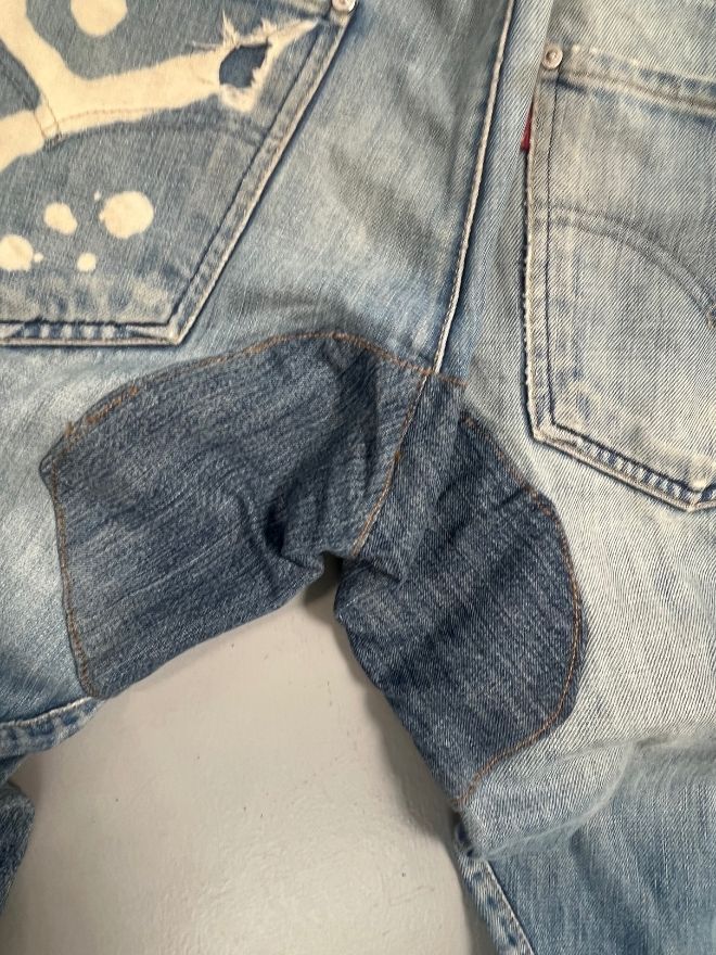 Some visible wear and minor damage present — part of the natural aging and character of vintage denim. No major structural flaws affecting wearability.