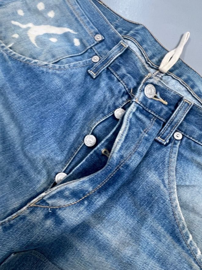 The denim shows natural vintage wear and fading, giving it authentic character and patina. Ideal for collectors, denim enthusiasts, and curated vintage fashion wardrobes.