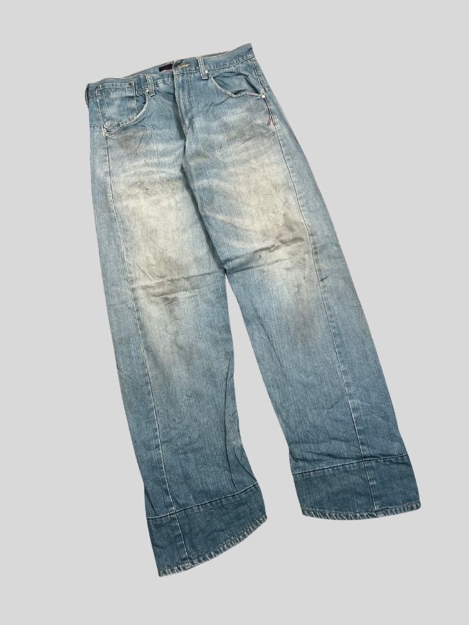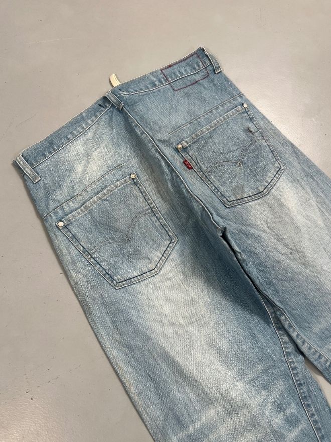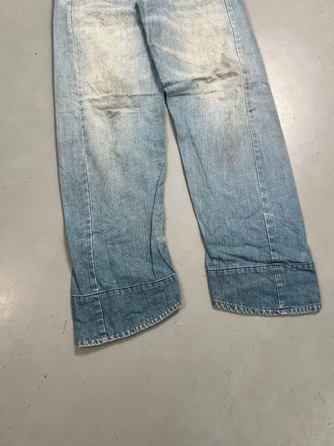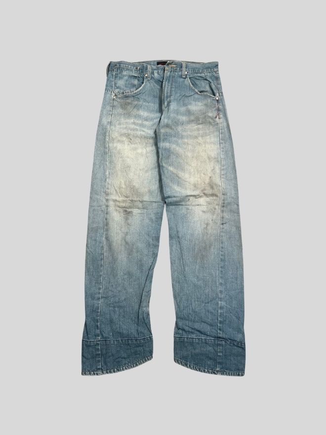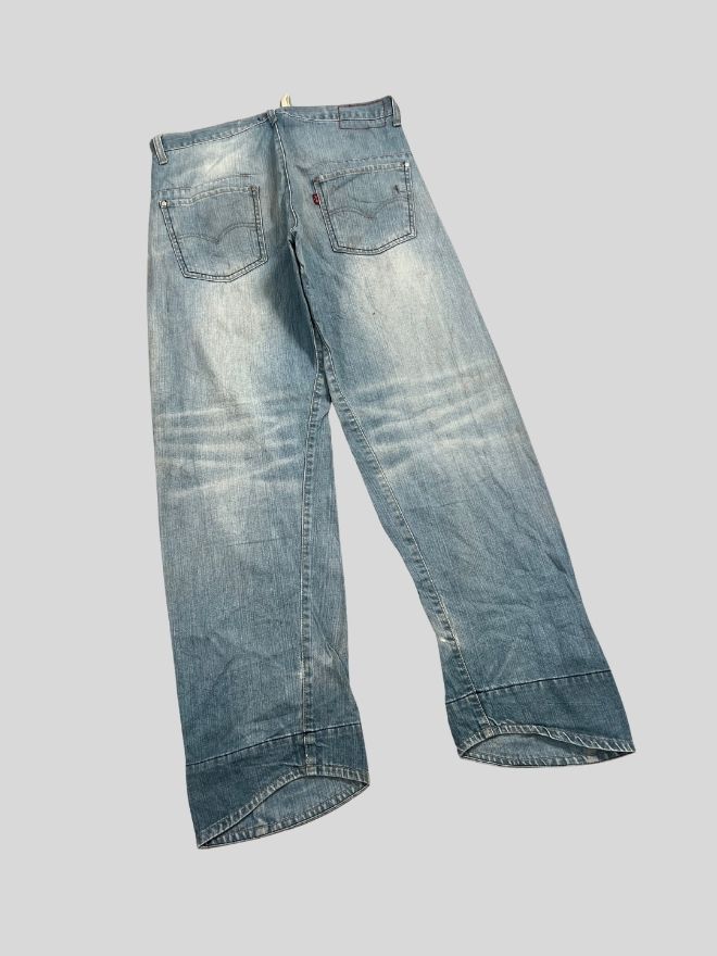 The pair shows some damages and distressing, enhancing its character and giving it the rugged, worn-in look vintage lovers appreciate. Ideal for collectors, workwear fans, and anyone searching for rare Levi’s archive pieces.