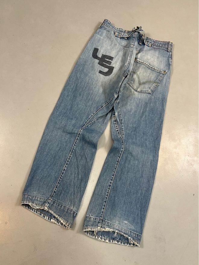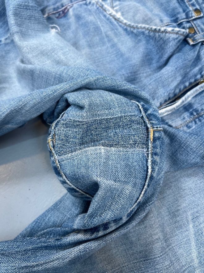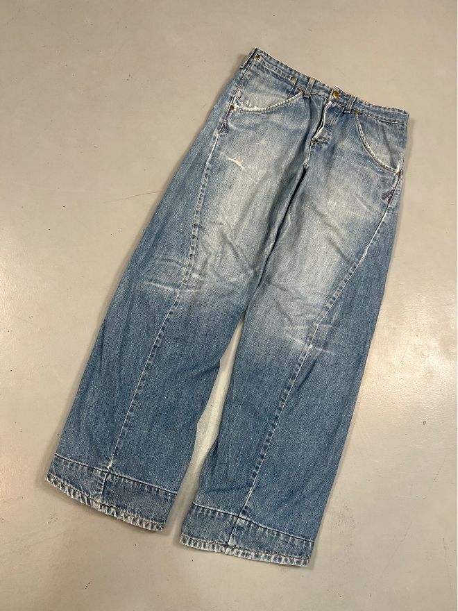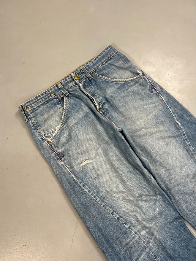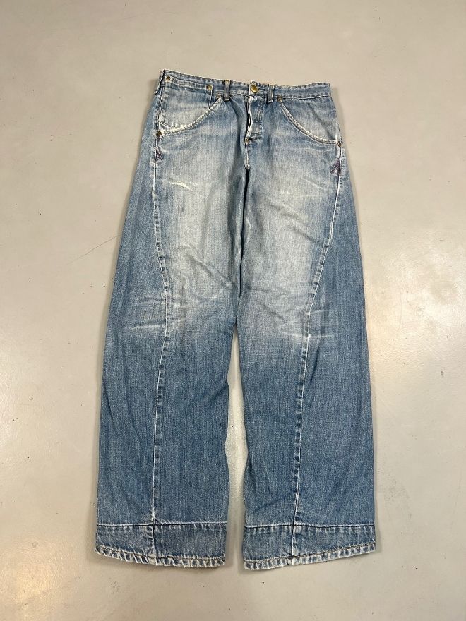 This pair carries the perfect aged blue patina, fading, and wear that vintage enthusiasts and archive fashion fans look for.