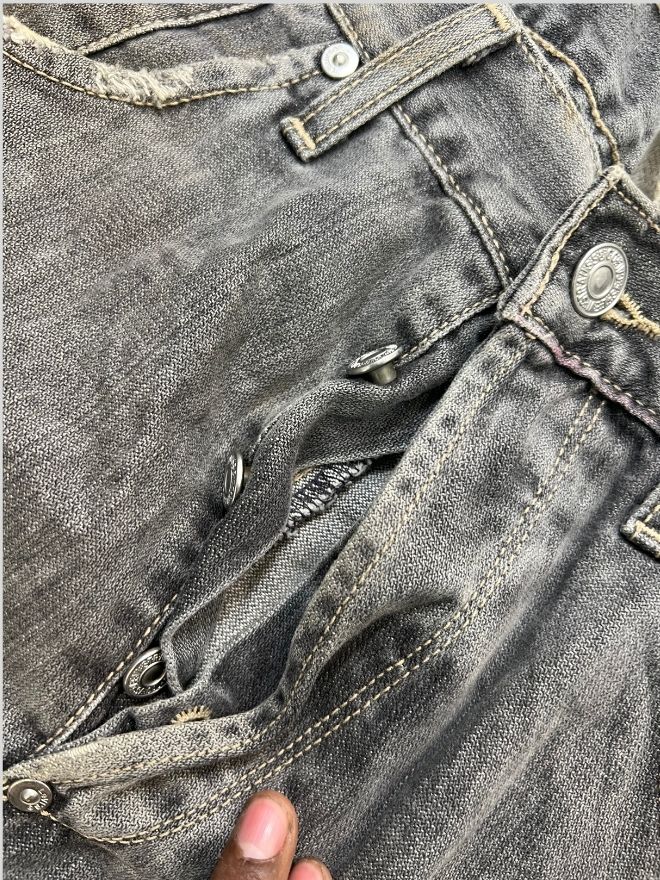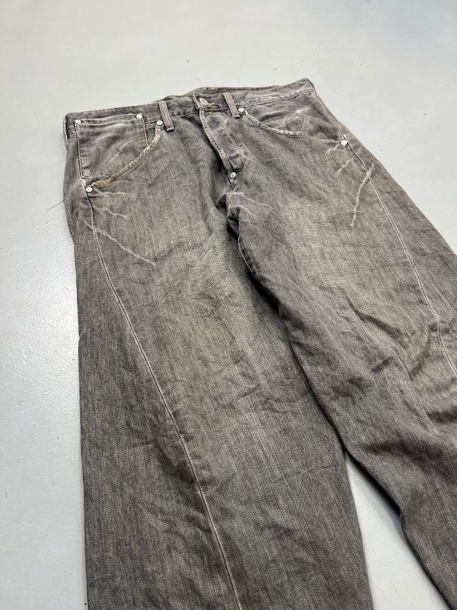 This item is used and vintage, showing some visible damages from previous wear. These signs of use contribute to the authenticity and character of the jeans. Please review all photos carefully to understand the condition before purchasing.