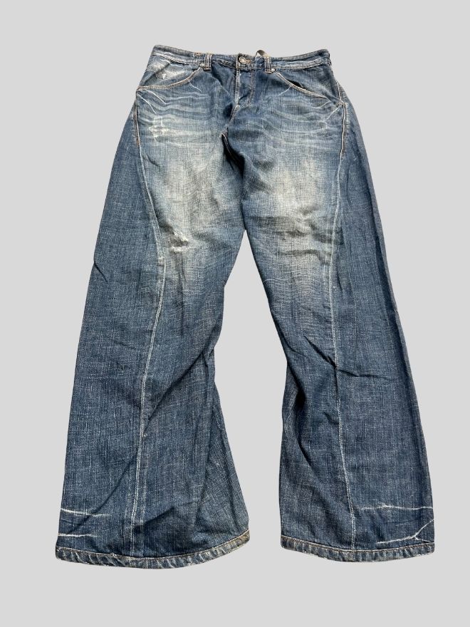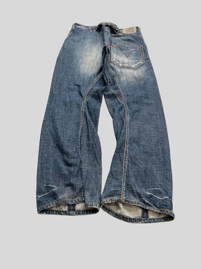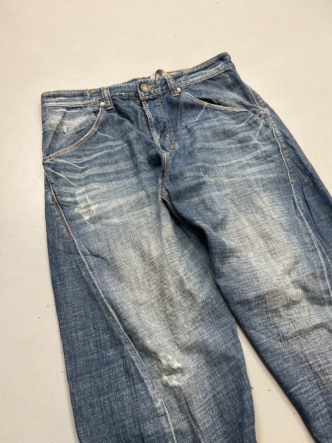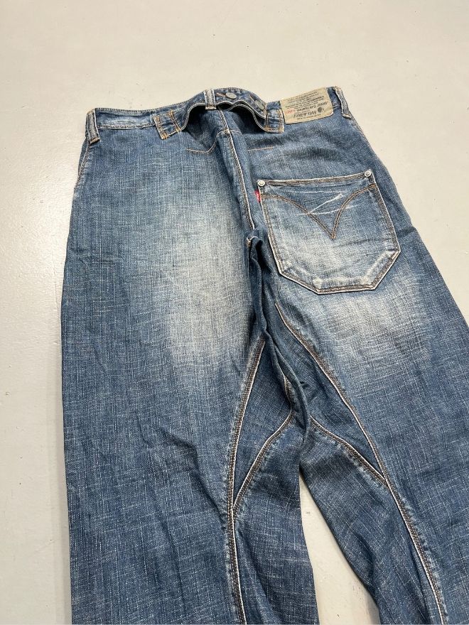 This is a used vintage item and shows visible damages from wear. These details are part of the jeans’ original appeal and individuality. Please carefully review all images provided to fully understand the condition before purchasing.