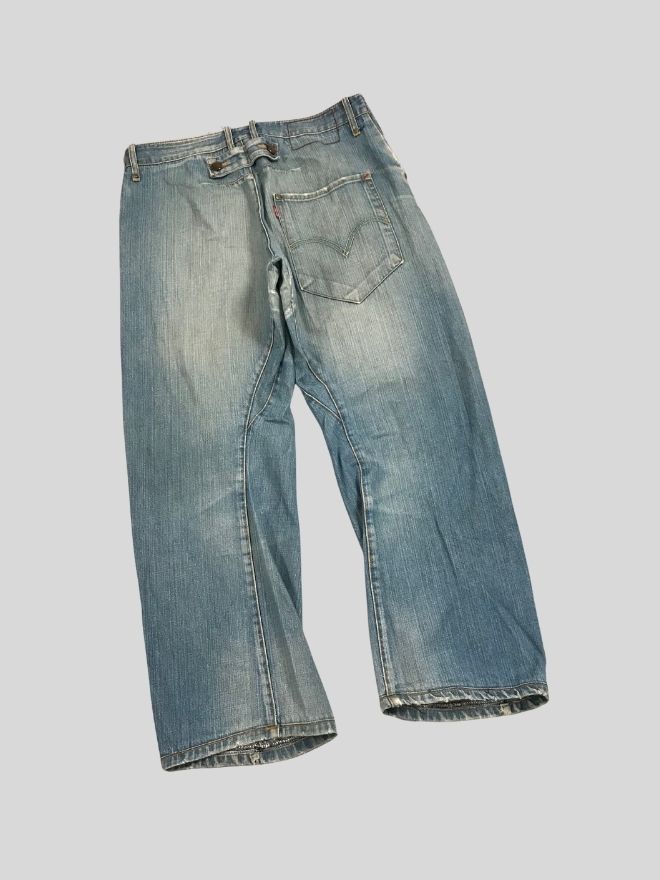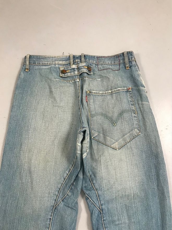 This Vintage Levi’s Engineer Jeans is a true archival piece with the iconic buckle belt fastening, rugged construction, and worn-in age marks that define authentic workwear heritage. Built from durable denim and aged naturally over time, these jeans offer a unique distressed patina perfect for collectors, stylists, and avant-garde denim enthusiasts.