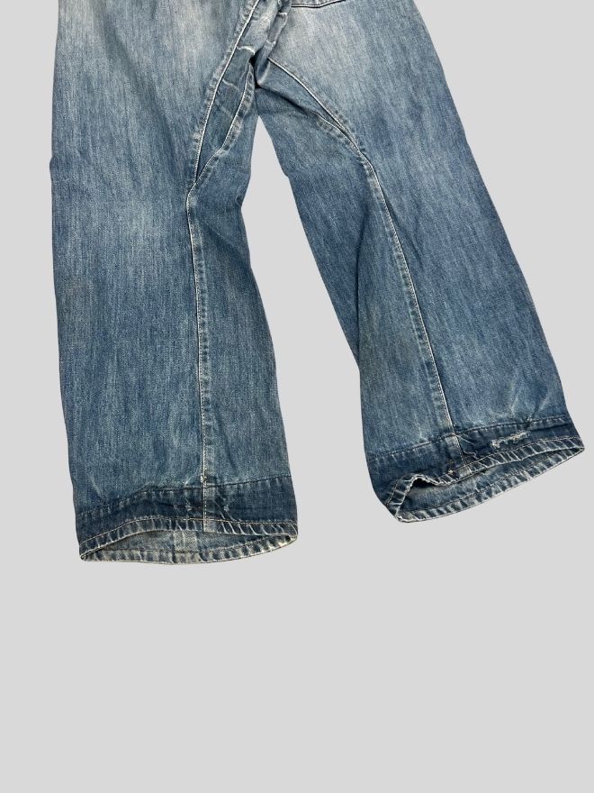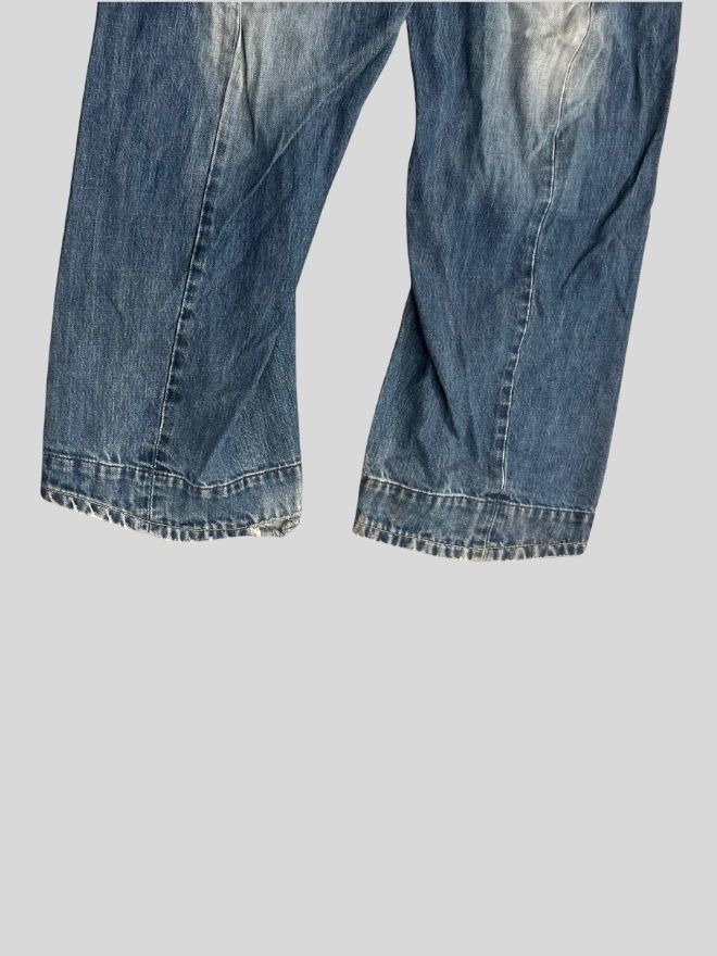 These jeans are crafted from heavy rigid denim, built to last decades — and the natural distressing, abrasions, fading, and patina tell the story of real wear over time. Nothing here is artificial or factory-manufactured: this is natural aging the way true denim lovers appreciate it — raw, worn, character-filled, and completely unique.