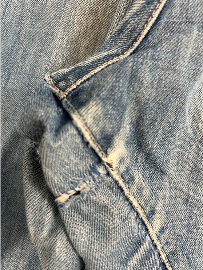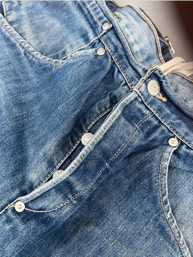 The silhouette offers a slightly loose, workwear-inspired fit with a straight leg and functional structure. Paired with boots or sneakers, oversized hoodies, leather jackets, or a vintage flannel, this pair adds the perfect rugged and lived-in aesthetic. The rear cinch buckle is one of the most iconic details of early Levi’s engineer and labor denim — making this pair more than clothing: it’s a collectible.