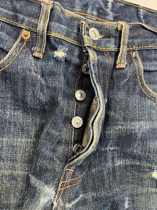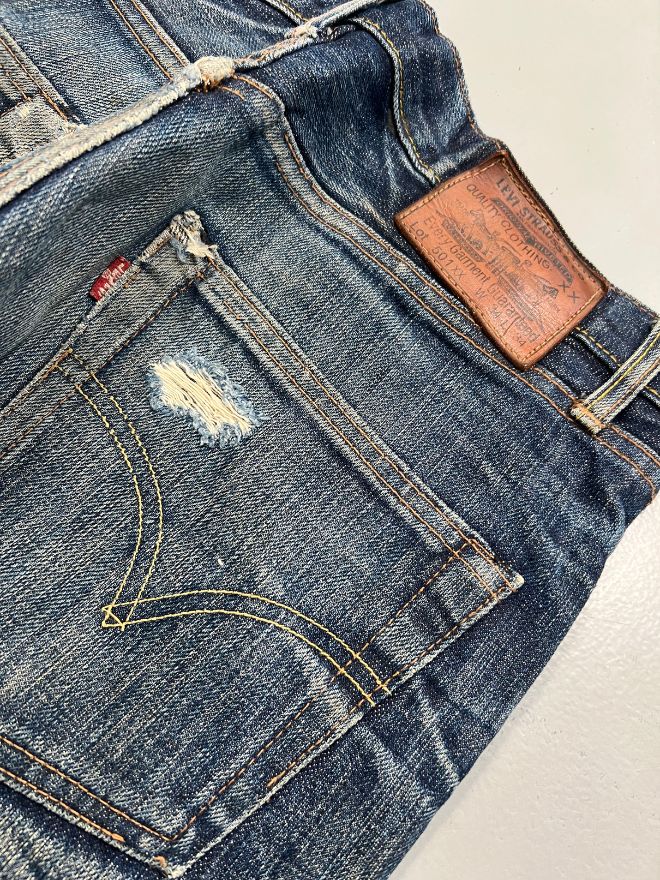 A true vintage Levi’s 501 selvedge piece offering history, durability, and timeless denim style.