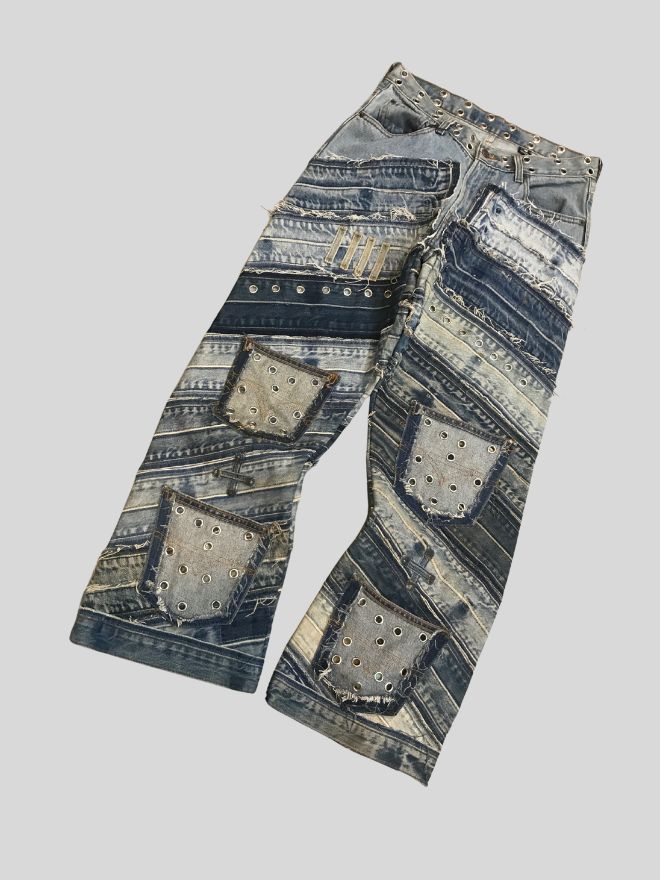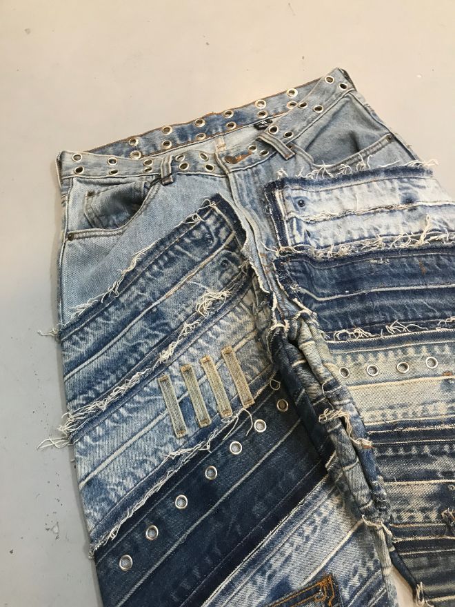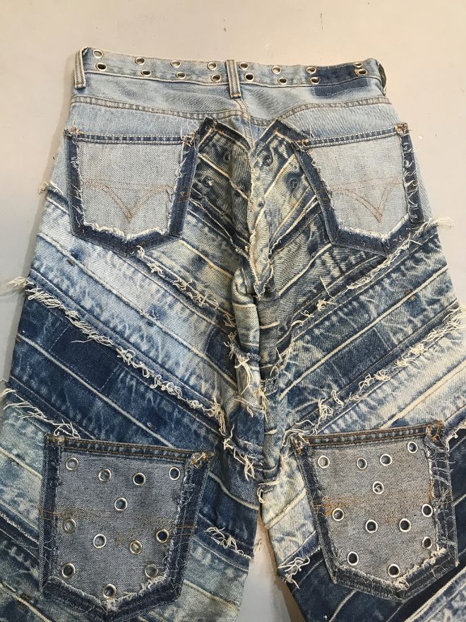 Style: Vintage upcycled heavy patch denim jeans