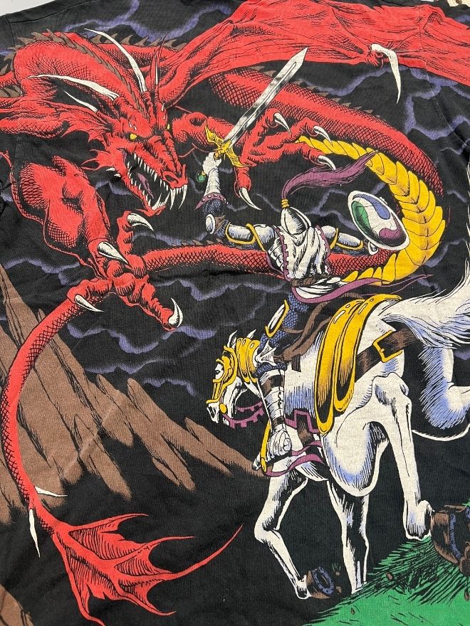 This T-shirt is in used but very good condition. It is perfectly fine, comfortable, and well maintained. No major flaws noted. Any minor signs of wear are consistent with age. Please review all photos carefully before purchase.