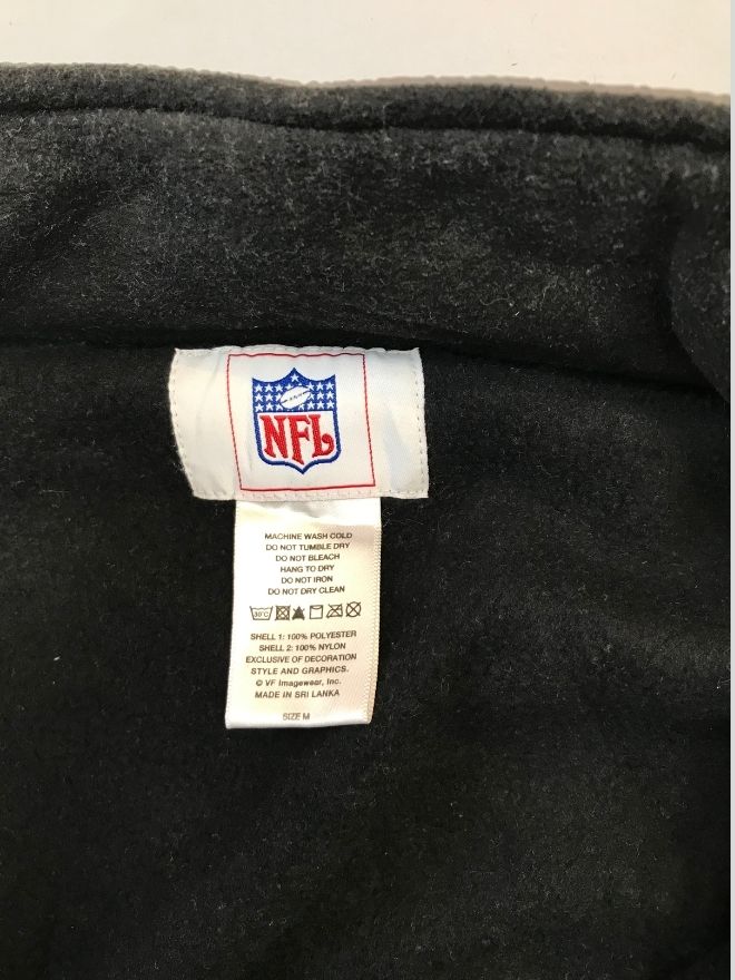 The jacket comes in a black and grey colorway, offering a clean and versatile look that pairs well with jeans, cargos, or joggers. The full-zip front, soft fleece construction, and ribbed cuffs make it ideal for layering during cooler weather. A great option for NFL fans, vintage collectors, or anyone into retro sports-inspired streetwear.