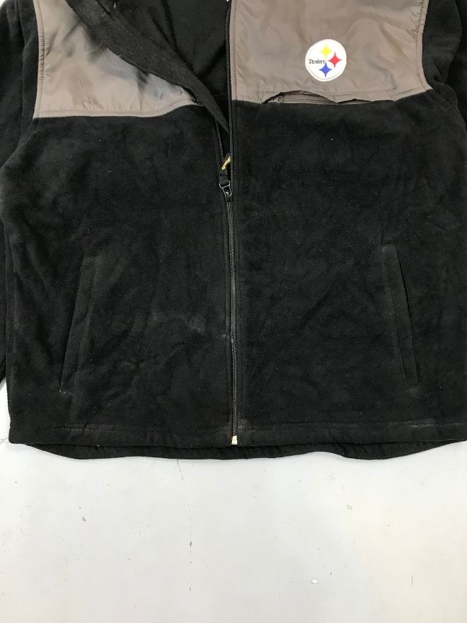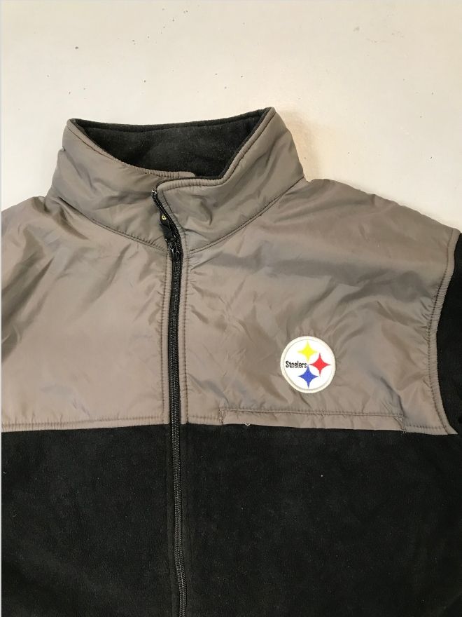 This Vintage NFL Pittsburgh Steelers fleece zip jacket is a classic piece of American sportswear history, featuring the iconic Steelers logo patch on the chest. Designed for comfort and warmth, this jacket combines a timeless athletic aesthetic with everyday wearability.