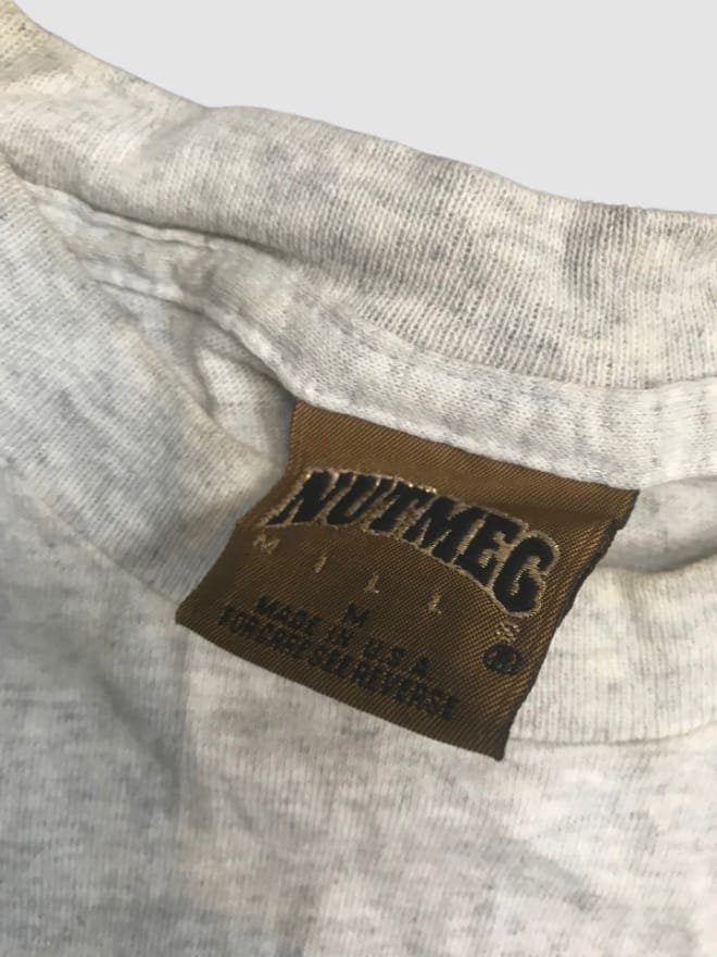 Single Stitch (Potentially): Many Nutmeg Mills tees were single stitch, which is a key indicator of vintage age. If the tee is single stitch, make sure to point that out.