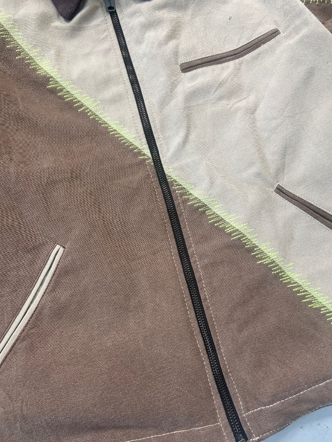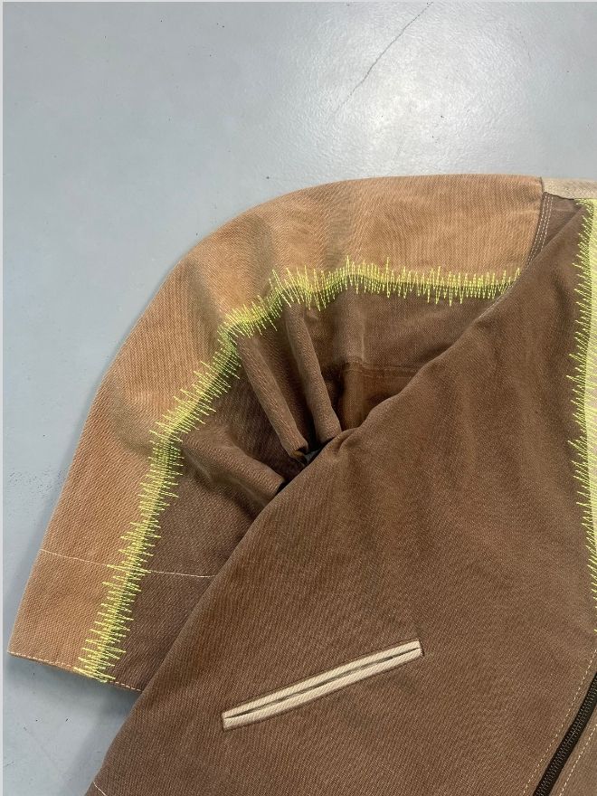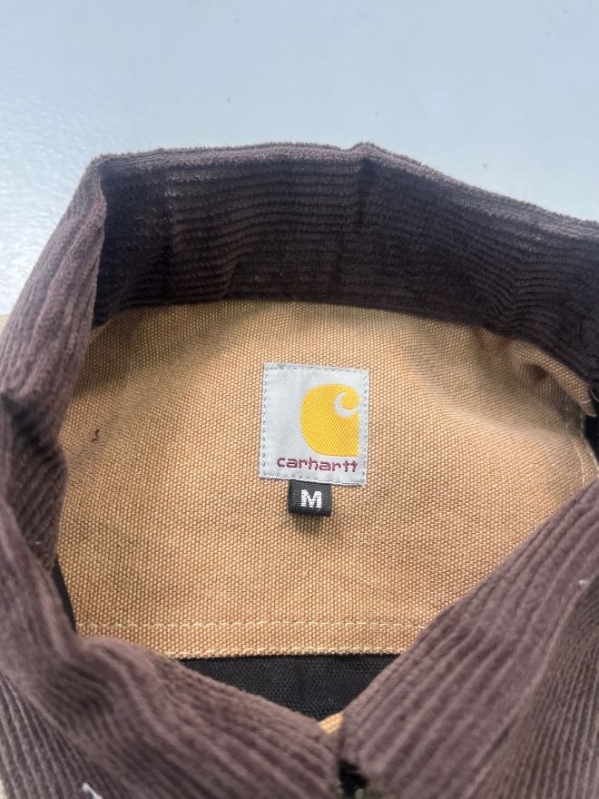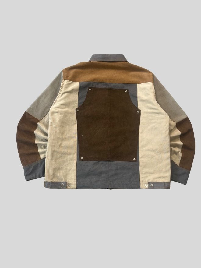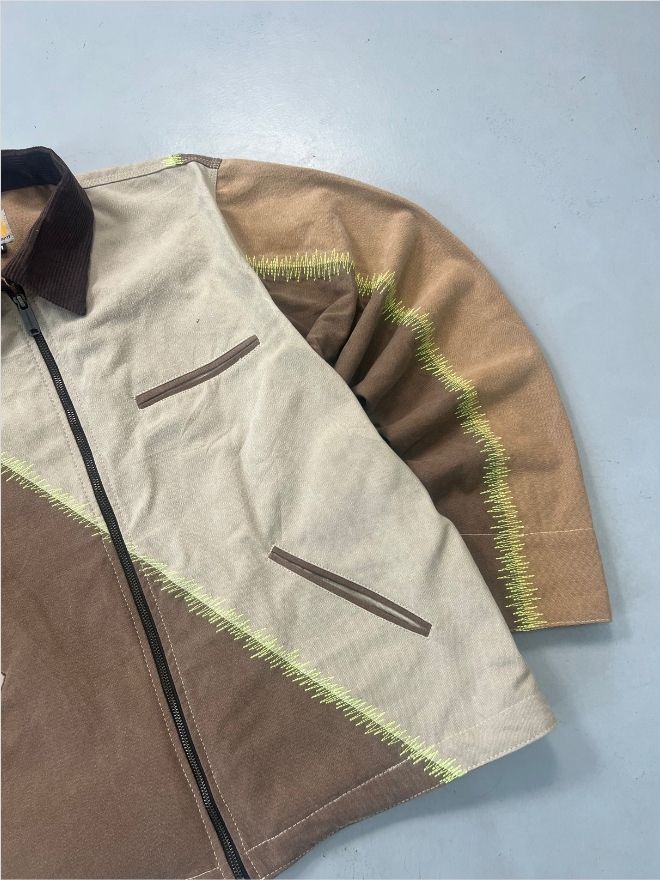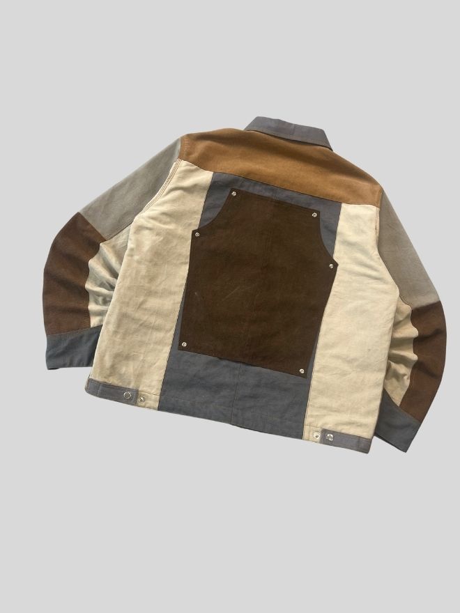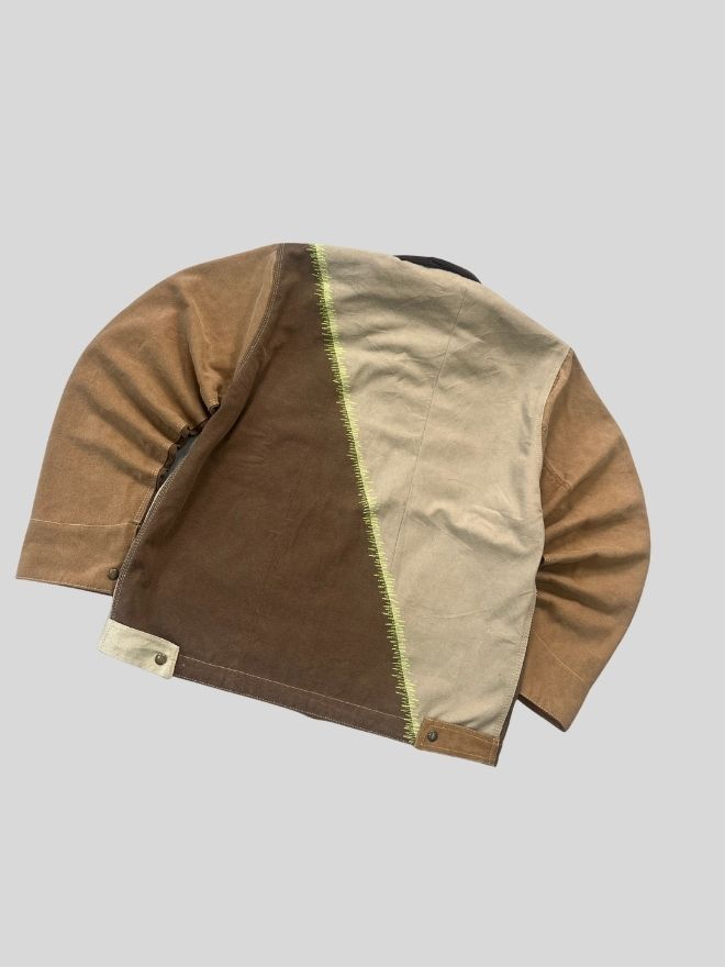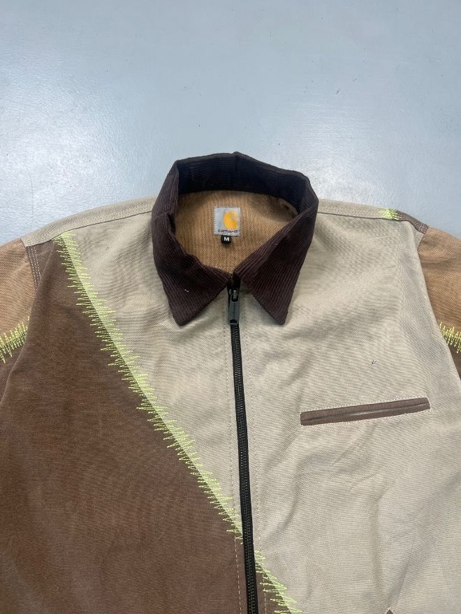 One-of-one vintage Carhartt Detroit lightweight upcycled boxy jacket in multi-tone finish. Size Medium. Unique reconstructed design — perfect condition. A rare archive-style piece for collectors.