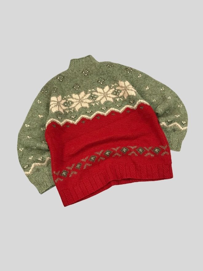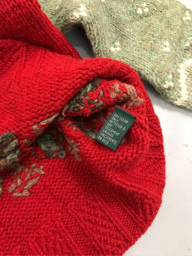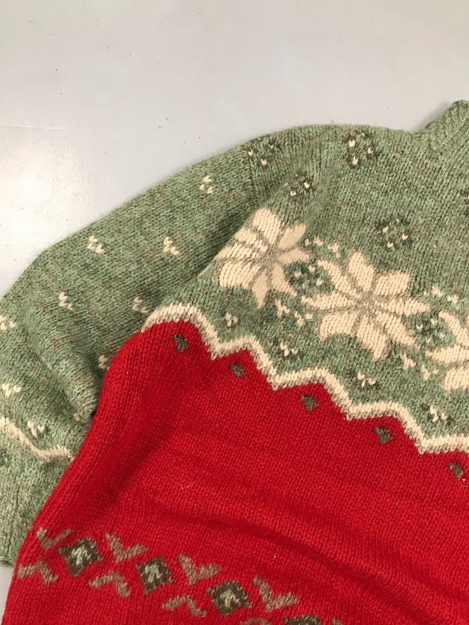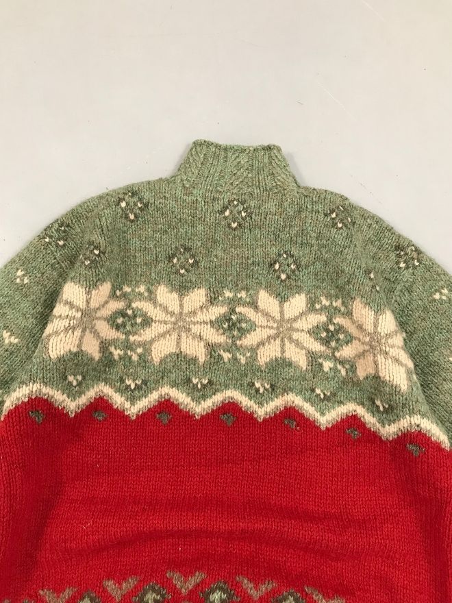 This sweater is tagged size Large, however based on measurements, it fits closer to a Men’s Small–Medium depending on styling preference. The knit has been worn and well-maintained, with no major defects noted — only requires dry cleaning for renewed freshness.