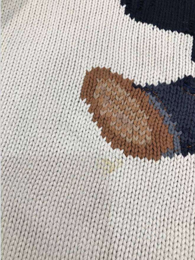 Recommended: dry cleaning or gentle wool wash to preserve knit structure and embroidery