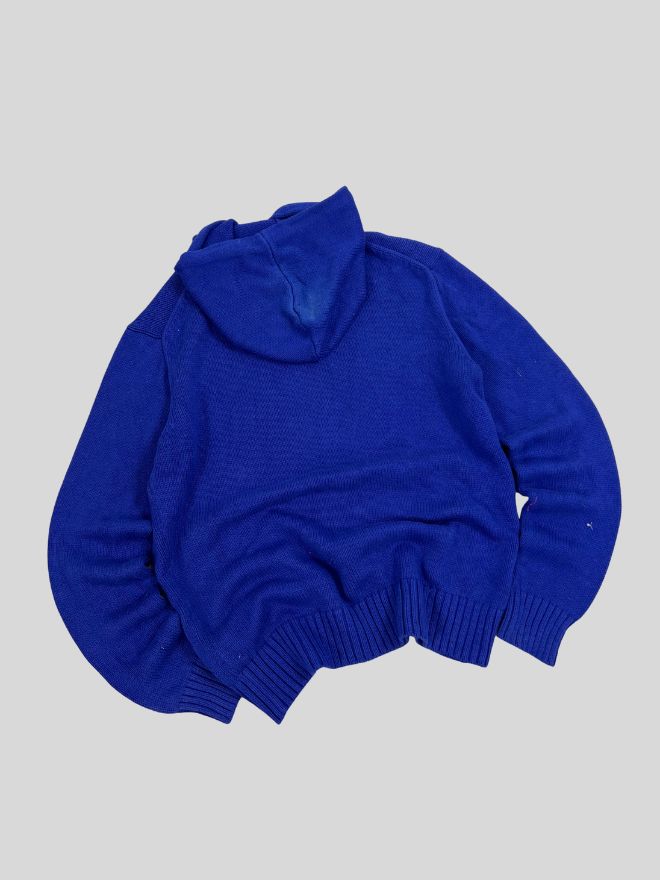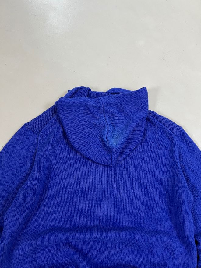 Vintage Polo Ralph Lauren bear knit sweater in a classic blue colorway. Tagged size S, well maintained with no major flaws. A rare and collectible piece showcasing the iconic Polo Bear graphic.