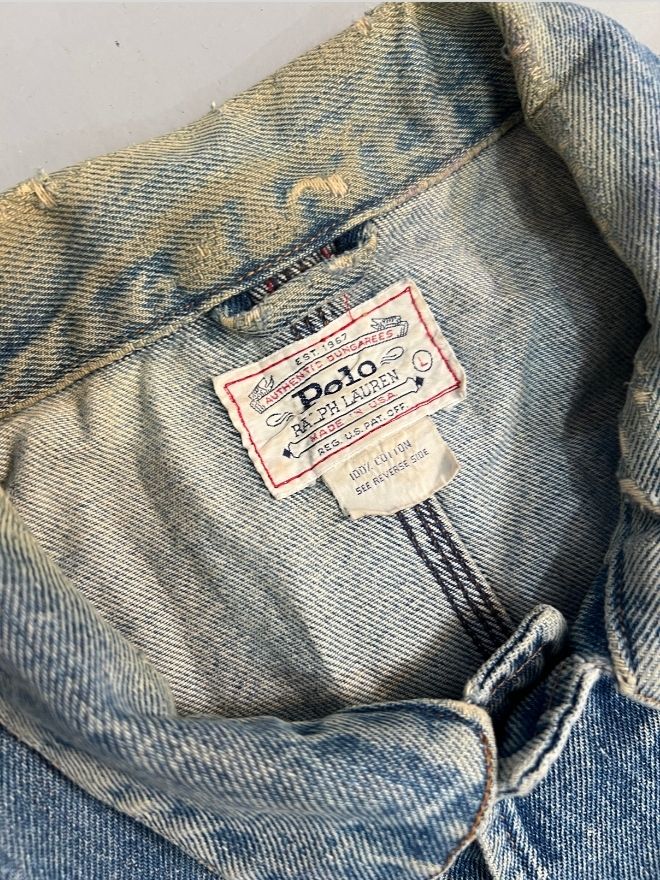 This vintage Polo Ralph Lauren denim jacket showcases a timeless silhouette with premium denim construction. The jacket is well maintained, offering both comfort and durability, making it an ideal addition for vintage lovers and modern streetwear styling alike.