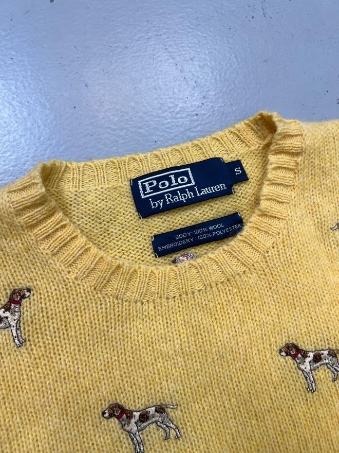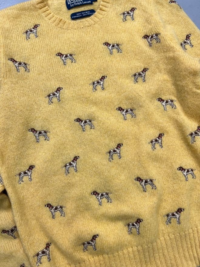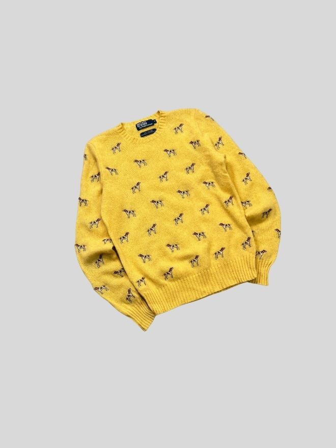 Authentic Vintage Polo Ralph Lauren knit sweater featuring the iconic multiple dogs motif.