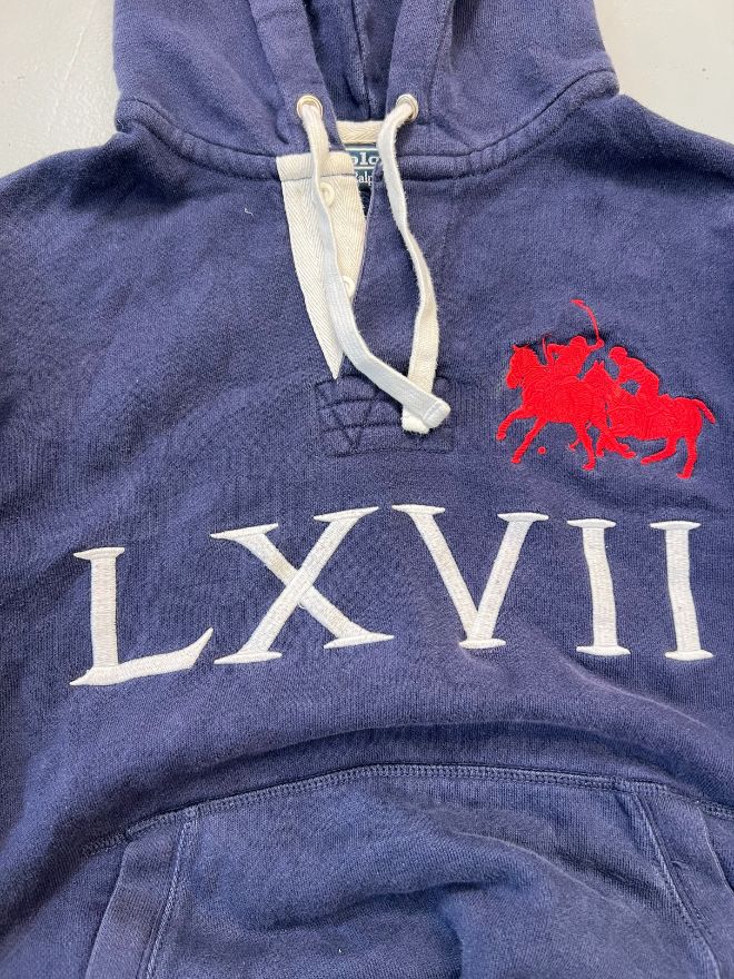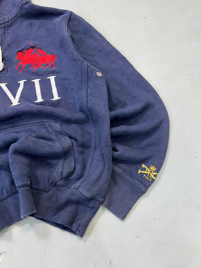 Authentic Vintage Polo Ralph Lauren LX7 Big Pony sweatshirt in classic blue color. Features the iconic oversized Big Pony logo, long sleeves, and a timeless streetwear silhouette. Soft cotton blend feel with a comfortable fit, perfect for casual outfits or layering.