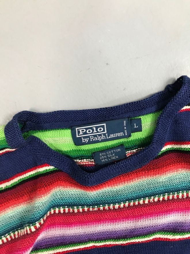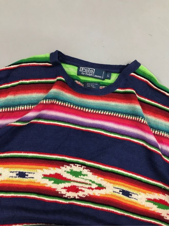 Authentic vintage Polo Ralph Lauren knit sweater in a multicolor pattern, tagged size M and fits like a regular men’s medium.