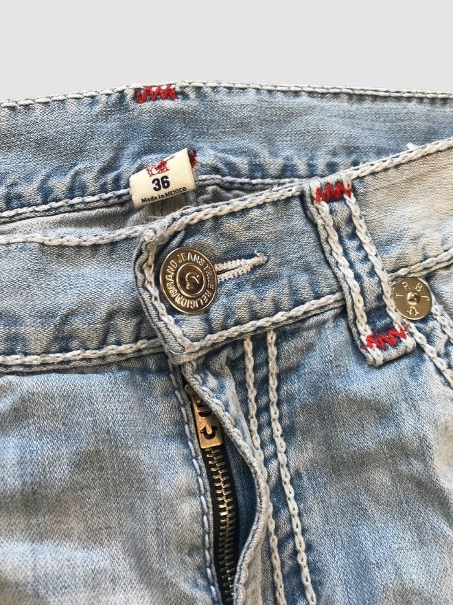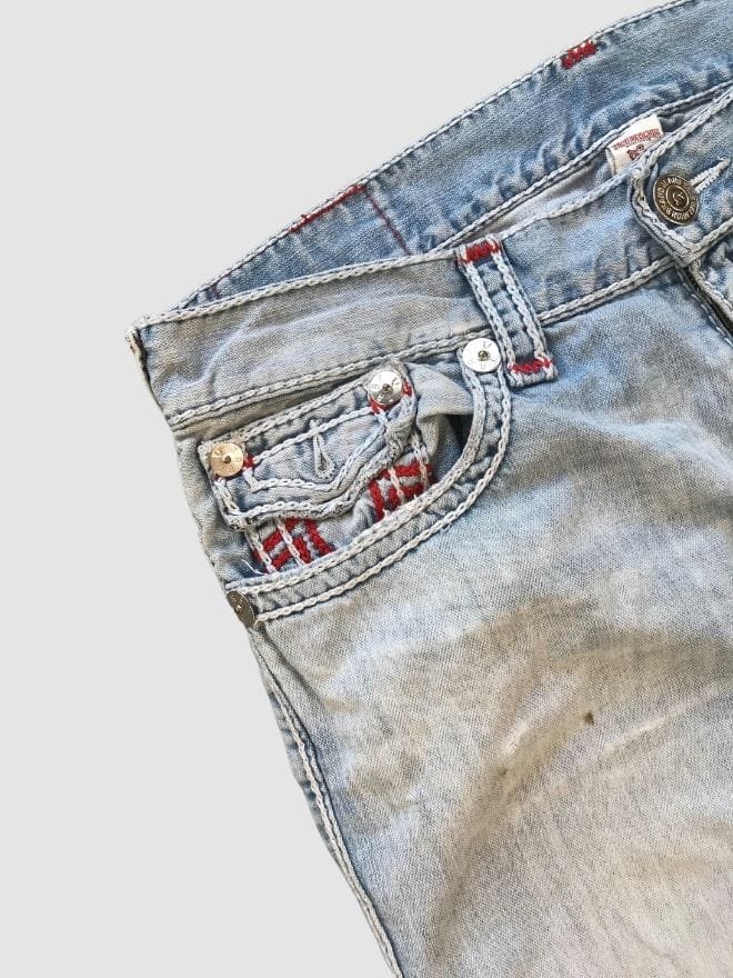 Own a piece of denim history with these vintage and rare True Religion Rope Stitch jeans. Known for their distinctive, thick “rope” stitching along the outseam, pockets, and waistband, these jeans are a true hallmark of early True Religion designs and a testament to the brand’s bold, premium aesthetic. These aren’t your average jeans; they’re a statement piece, instantly recognizable and coveted by collectors. Crafted from high-quality denim, these jeans offer a comfortable yet structured fit, built to last and showcase a unique, handcrafted feel. Finding a pair in good condition is a rare treat, making these a must-have for any serious denim enthusiast. Embrace the vintage vibe and the iconic rope stitch detailing with these rare True Religion jeans. Please note: Due to their vintage nature, these jeans may show signs of wear which adds to their unique character and story. Please refer to the product photos for specific details on the condition of each pair.