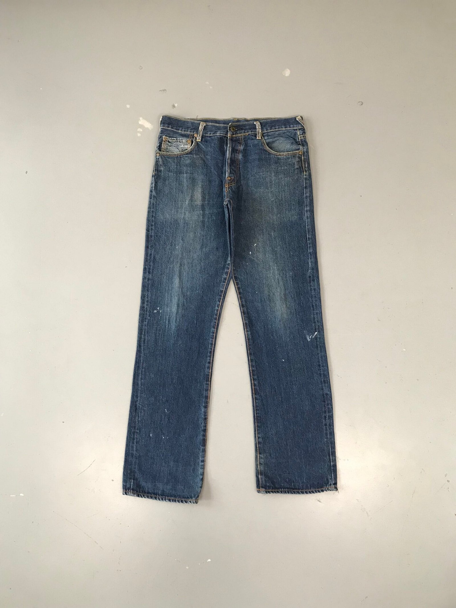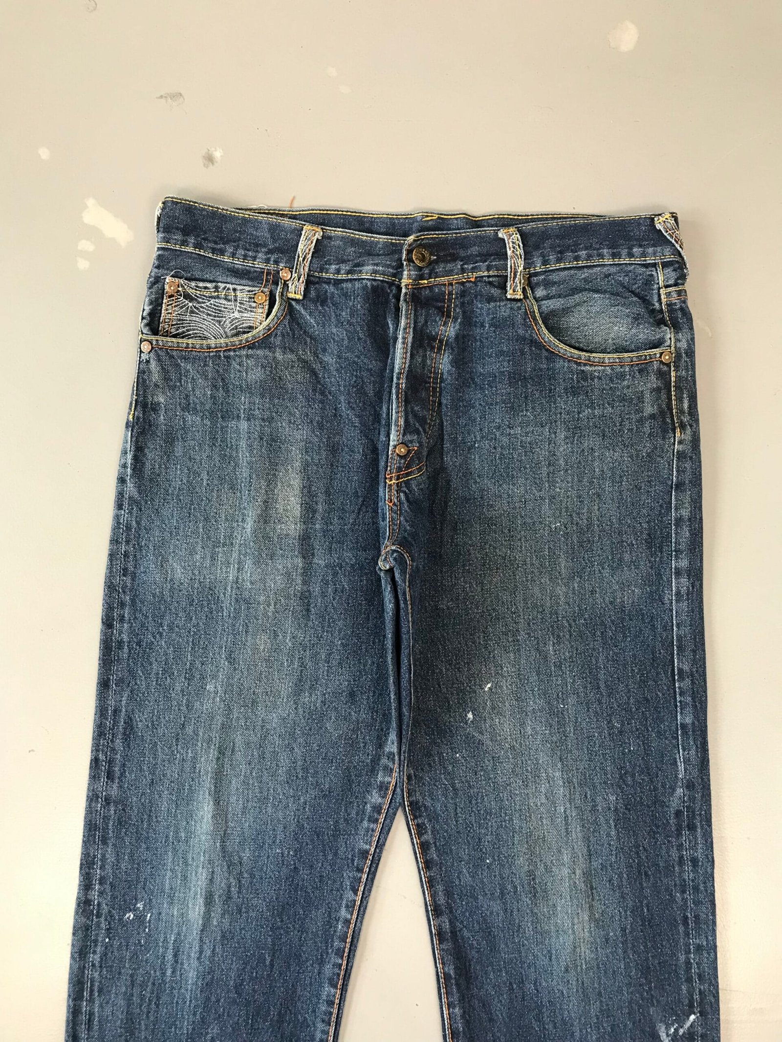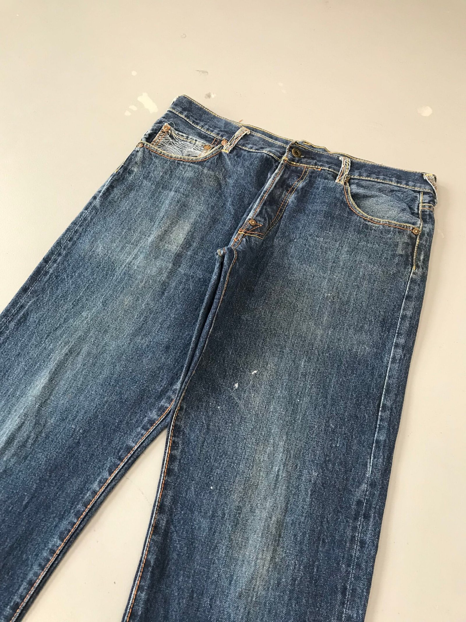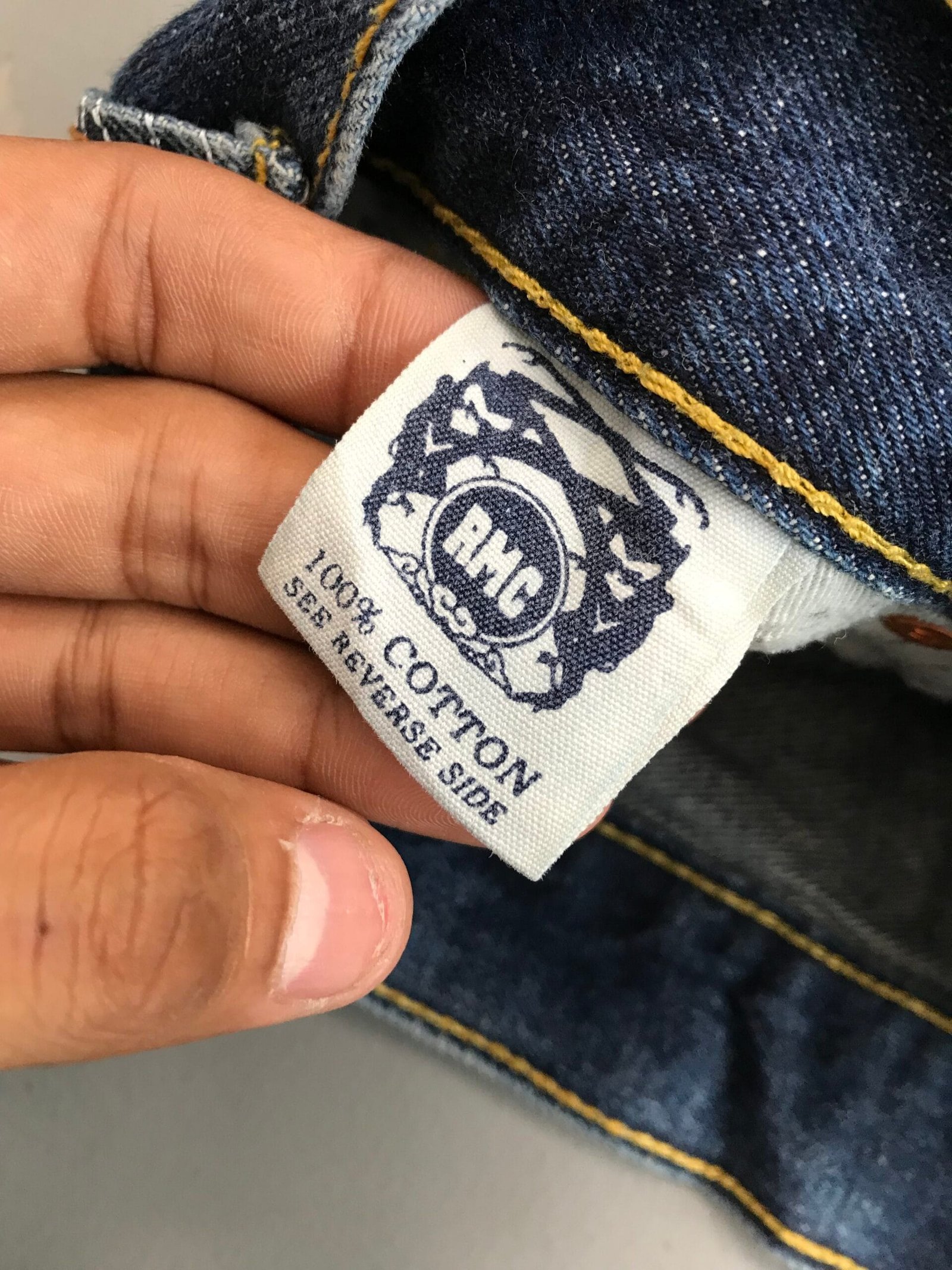 VINTAGE RMC JAPANESE SUKAJAN RAIJIN & FUJIN GOD EMBROIDERED DENIM