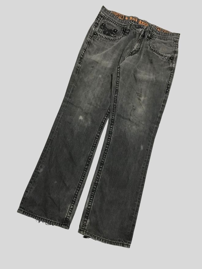 These Vintage Rock Revival Embroidered Denim Jeans are a standout piece known for their bold detailing and premium streetwear appeal. Rock Revival is recognized for high-quality denim combined with distinctive embroidery, making their jeans popular among fans of statement fashion and luxury street style.